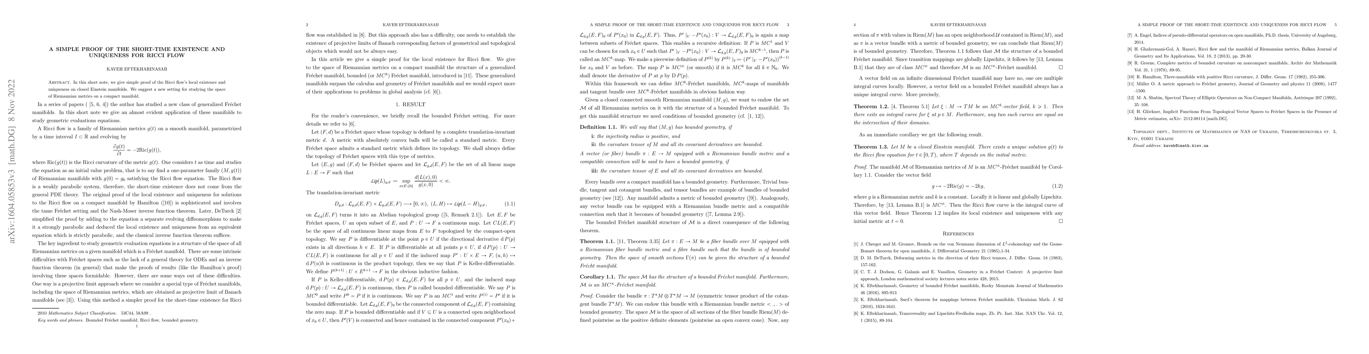 Summary: This paper presents a straightforward proof for the local existence and uniqueness of Ricci flow on closed Einstein manifolds, proposing a novel framework for exploring the space of Riemannian metrics on compact manifolds.
