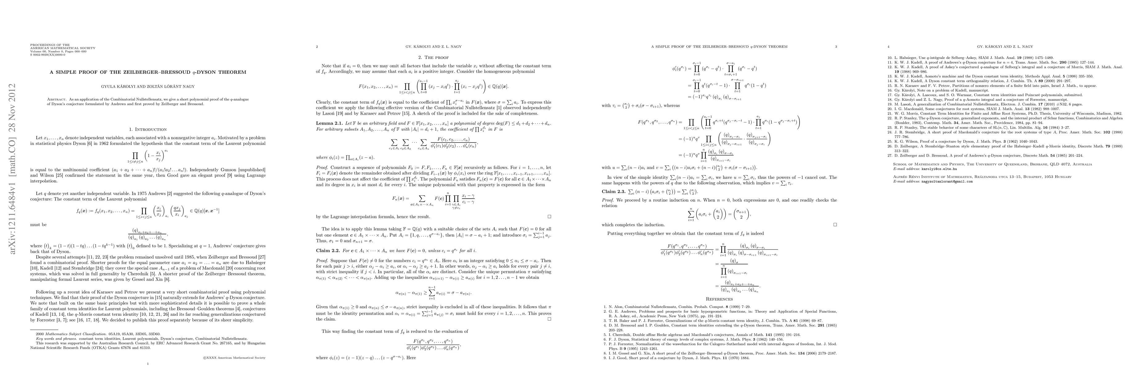 Summary: This paper provides a concise polynomial proof of the q-Dyson theorem using the Combinatorial Nullstellensatz, offering a simpler approach to the result originally established by Zeilberger and Bressoud.
