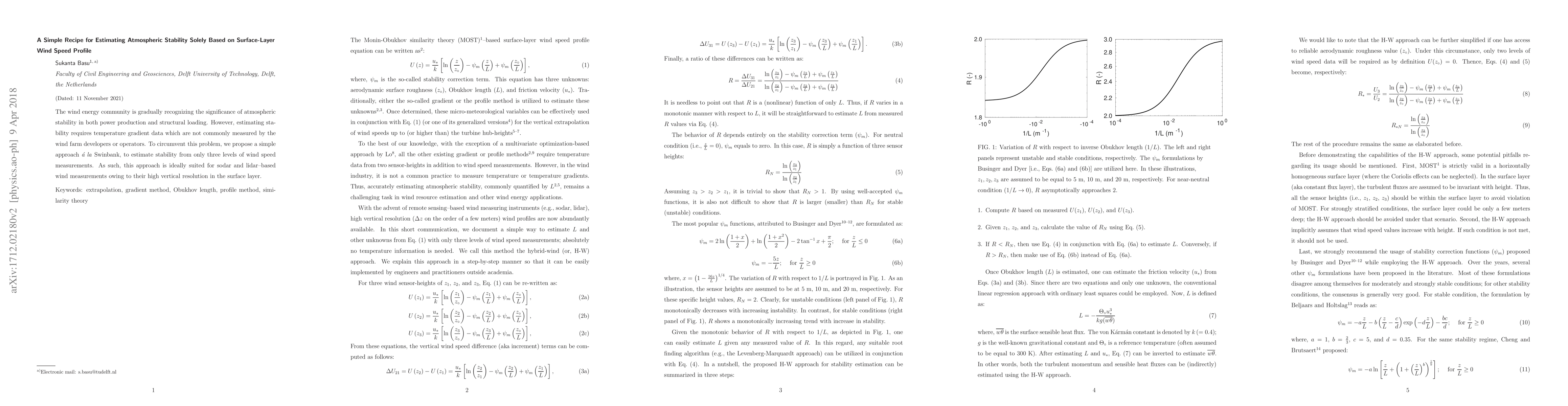 This paper proposes a straightforward method to estimate atmospheric stability using only wind speed data from three levels, bypassing the need for temperature gradient measurements. The approach is particularly beneficial for wind farm developers utilizing sodar or lidar technologies.