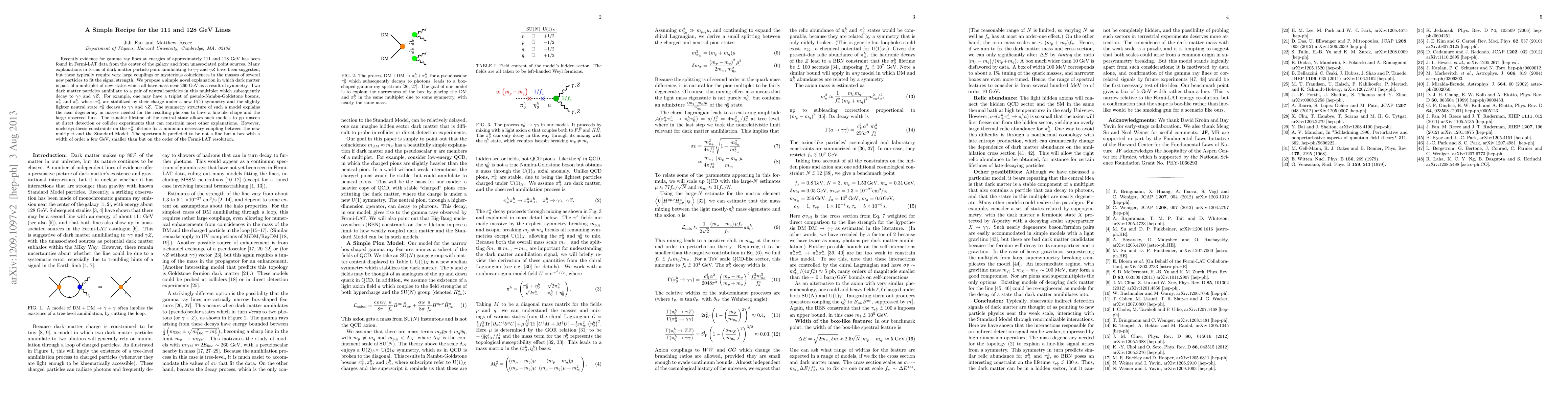 Recently evidence for gamma ray lines at energies of approximately 111 and 128 GeV has been found in Fermi-LAT data from the center of the galaxy and from unassociated point sources. Many explanations in terms of dark matter particle pairs annihilating to gamma gamma and gamma Z have been suggested, but these typically require very large couplings or mysterious coincidences in the masses of several new particles to fit the signal strength. We propose a simple novel explanation in which dark matter is part of a multiplet of new states which all have mass near 260 GeV as a result of symmetry. Two dark matter particles annihilate to a pair of neutral particles in this multiplet which subsequently decay to gamma gamma and gamma Z. For example, one may have a triplet of pseudo-Nambu-Goldstone bosons, charged pions and a neutral pion, where the charged pions are stabilized by their charge under a new U(1) symmetry and the slightly lighter neutral pion state decays to gamma gamma and gamma Z. The symmetry structure of such a model explains the near degeneracy in masses needed for the resulting photons to have a line-like shape and the large observed flux. The tunable lifetime of the neutral state allows such models to go unseen at direct detection or collider experiments that can constrain most other explanations. However, nucleosynthesis constraints on the neutral pion lifetime fix a minimum necessary coupling between the new multiplet and the Standard Model. The spectrum is predicted to be not a line but a box with a width of order a few GeV, smaller than but on the order of the Fermi-LAT resolution.