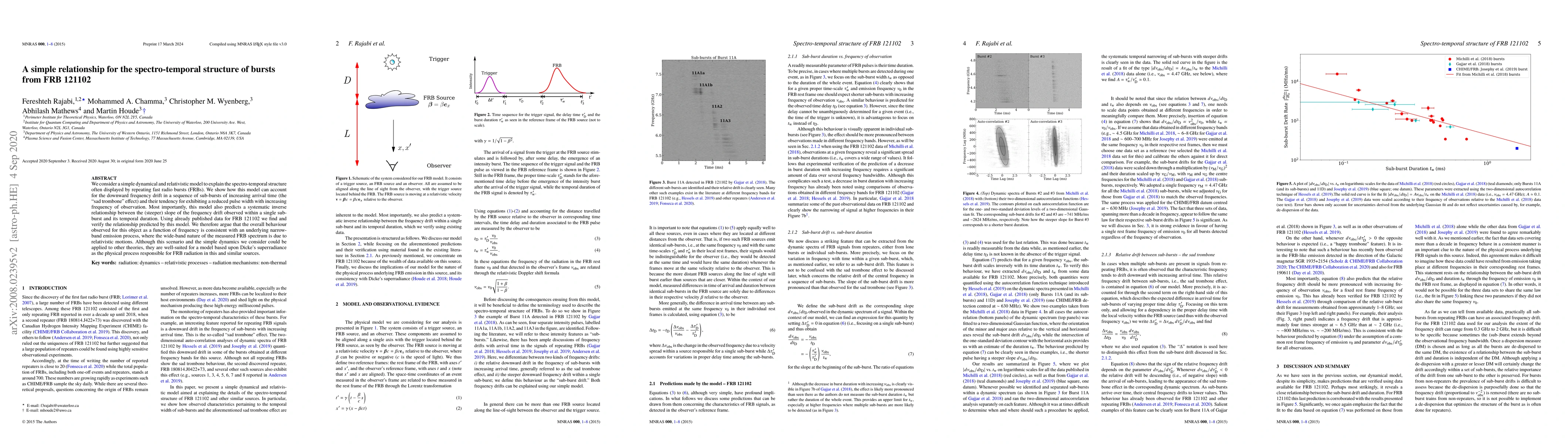 A simple model explains the spectro-temporal structure of FRB 121102 bursts, predicting a systematic inverse relationship between frequency drift slope and temporal duration.