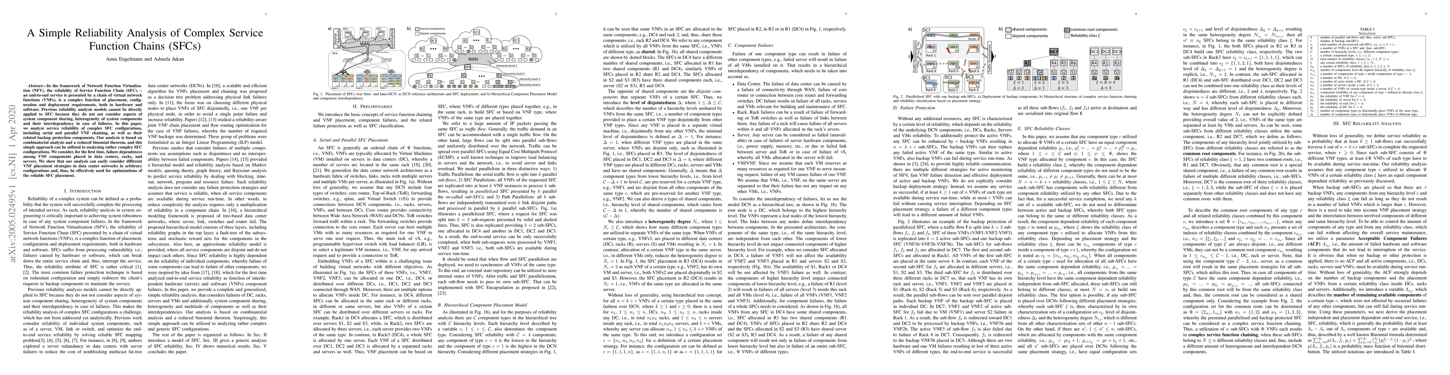 This paper presents a new reliability analysis method for Service Function Chains (SFCs) in NFV, focusing on complex configurations involving both serial and parallel VNF chains, including backup components. The approach leverages combinatorial analysis and a reduced binomial theorem to effectively evaluate failure dependencies among VNF components, offering optimization for reliable SFC placement strategies.