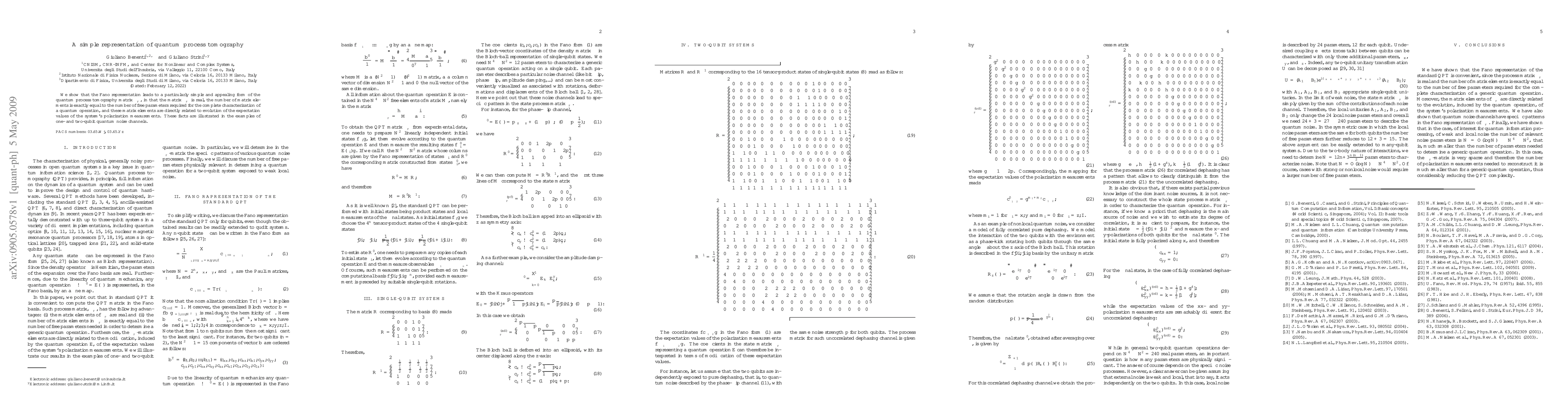We show that the Fano representation leads to a particularly simple and appealing form of the quantum process tomography matrix $\chi_{_F}$, in that the matrix $\chi_{_F}$ is real, the number of matrix elements is exactly equal to the number of free parameters required for the complete characterization of a quantum operation, and these matrix elements are directly related to evolution of the expectation values of the system's polarization measurements. These facts are illustrated in the examples of one- and two-qubit quantum noise channels.