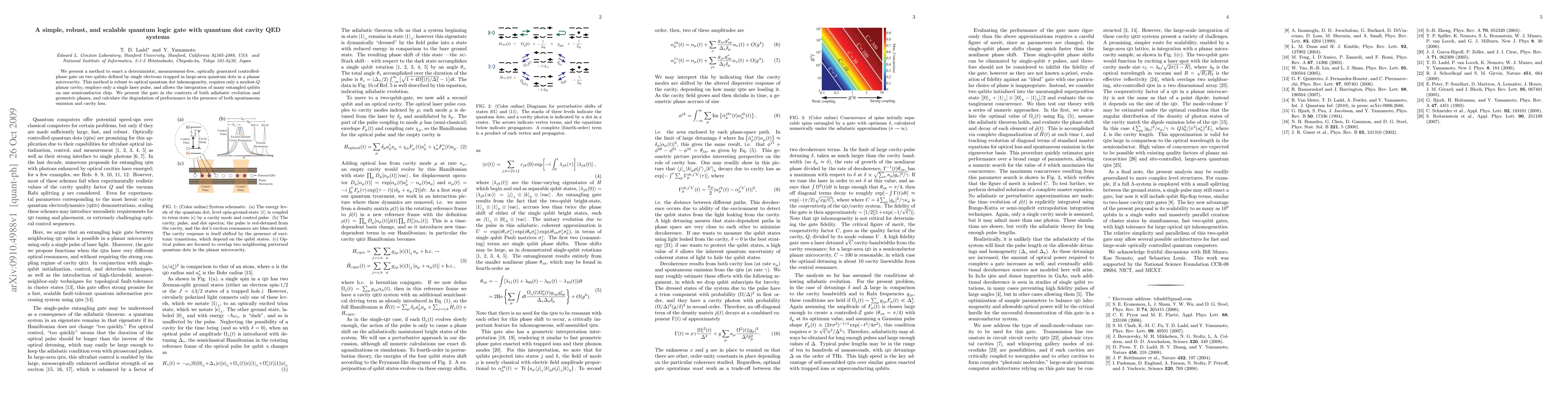 We present a method to enact a deterministic, measurement-free, optically generated controlled-phase gate on two qubits defined by single electrons trapped in large-area quantum dots in a planar microcavity. This method is robust to optical quantum dot inhomogeneity, requires only a modest-$Q$ planar cavity, employs only a single laser pulse, and allows the integration of many entangled qubits on one semiconductor chip. We present the gate in the contexts of both adiabatic evolution and geometric phases, and calculate the degradation of performance in the presence of both spontaneous emission and cavity loss.