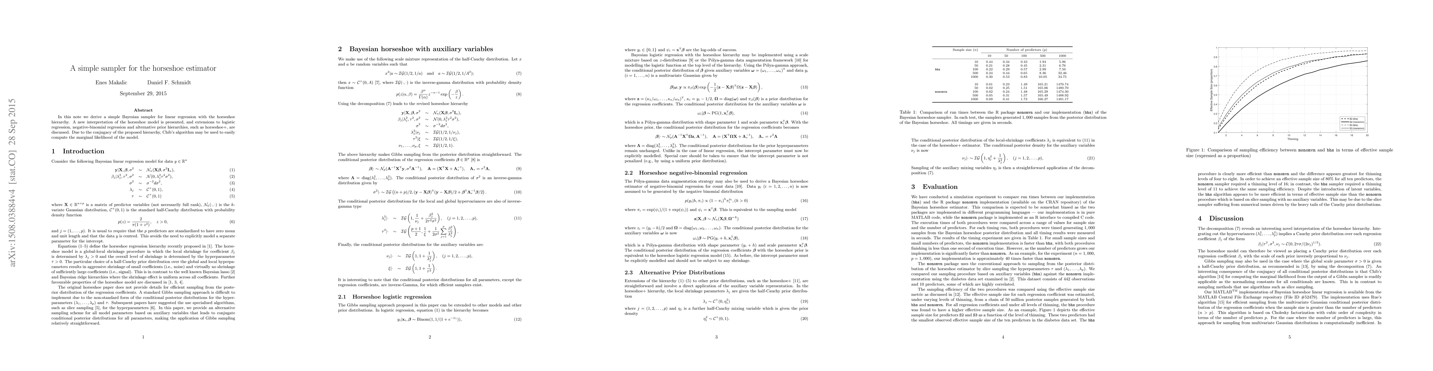 Researchers developed a simple Bayesian sampler for a statistical model called the horseshoe estimator, which is used in linear regression, logistic regression, and other applications.