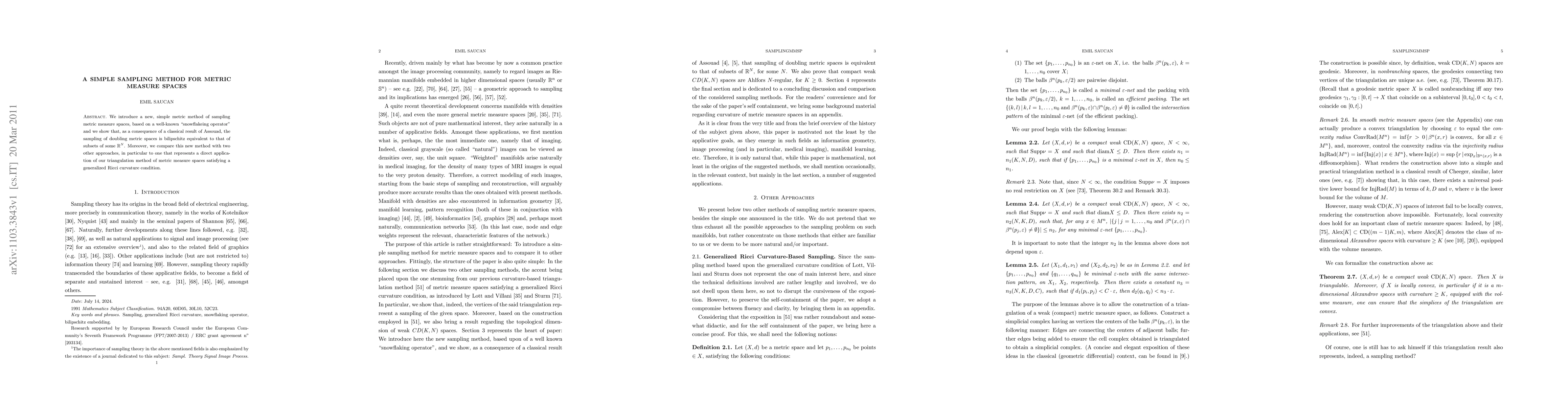 Researchers introduce a new method for sampling metric measure spaces, showing it is bilipschitz equivalent to sampling subsets of $oxed{ ext{R}^N}$ in doubling metric spaces.