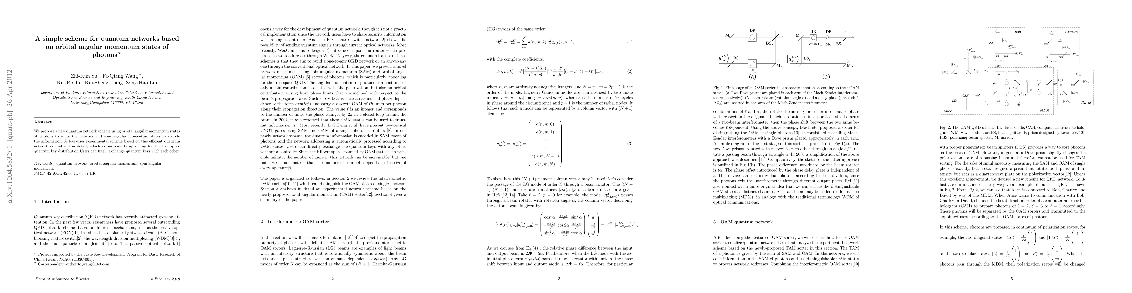 This paper proposes a novel quantum network scheme utilizing orbital angular momentum states for routing and spin angular momentum states for information encoding. The authors analyze a four-user experimental setup, demonstrating its potential for efficient free space quantum key distribution, allowing users to exchange quantum keys freely.
