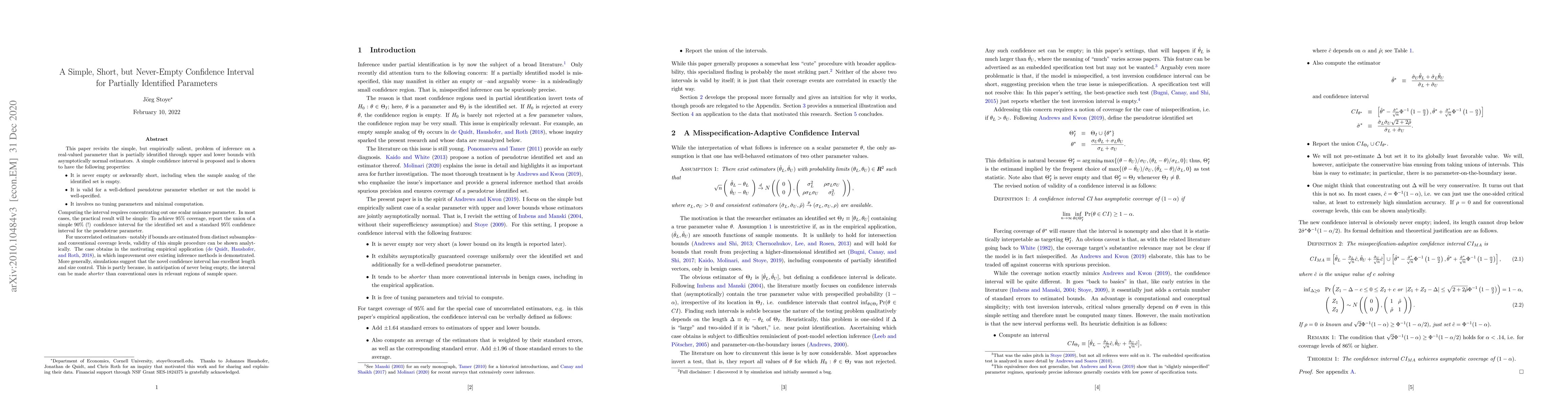 Jörg Stoye, Hiroaki Kaido, Francesca Molinari