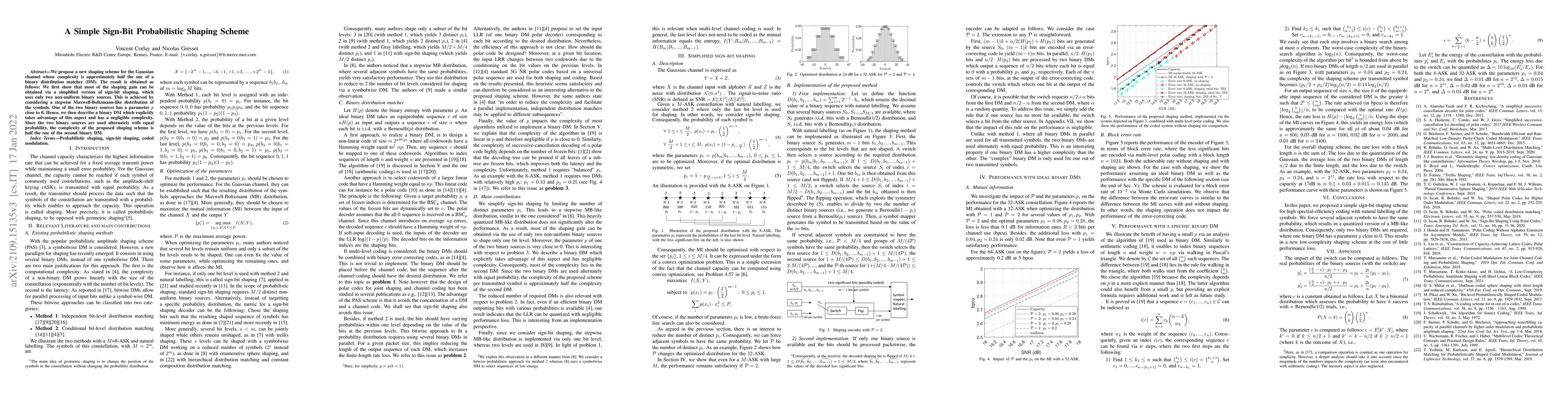 This paper introduces a simplified sign-bit probabilistic shaping scheme for the Gaussian channel, achieving half the complexity of a binary distribution matcher. It leverages a stepwise Maxwell-Boltzmann-like distribution and alternates between two non-uniform binary sources to maximize shaping gain.