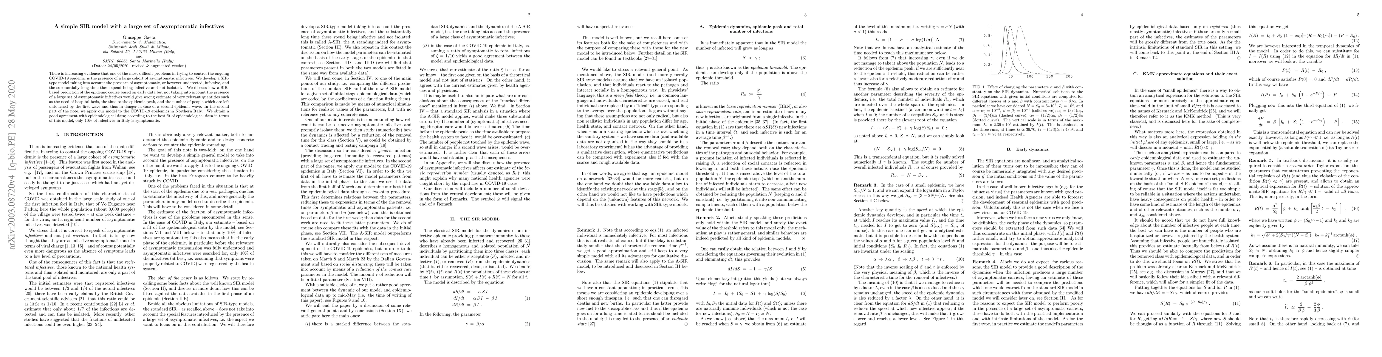 There is increasing evidence that one of the most difficult problems in trying to control the ongoing COVID-19 epidemic is the presence of a large cohort of asymptomatic infectives. We develop a SIR-type model taking into account the presence of asymptomatic, or however undetected, infective, and the substantially long time these spend being infective and not isolated. We discuss how a SIR-based prediction of the epidemic course based on early data but not taking into account the presence of a large set of asymptomatic infectives would give wrong estimate of very relevant quantities such as the need of hospital beds, the time to the epidemic peak, and the number of people which are left untouched by the first wave and thus in danger in case of a second epidemic wave. In the second part of the note, we apply our model to the COVID-19 epidemics in Italy. We obtain a good agreement with epidemiological data; according to the best fit of epidemiological data in terms of this model, only 10\% of infectives in Italy is symptomatic.