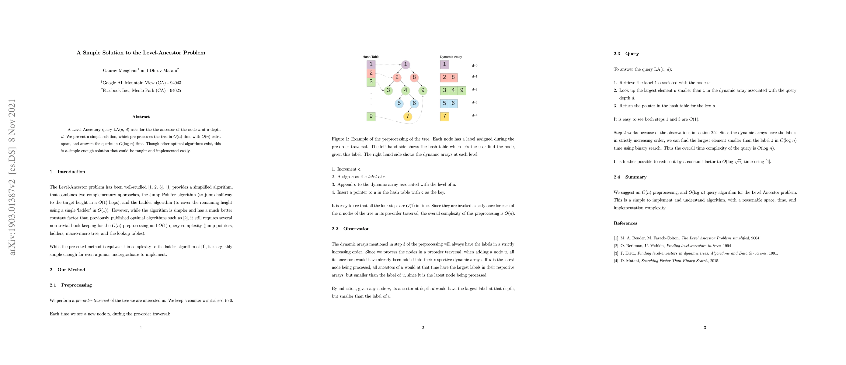 This paper presents an efficient $O(n)$ time and $O(n)$ space pre-processing method for solving the Level Ancestory query in $O(\log n)$ time, offering a straightforward solution suitable for teaching and easy implementation.