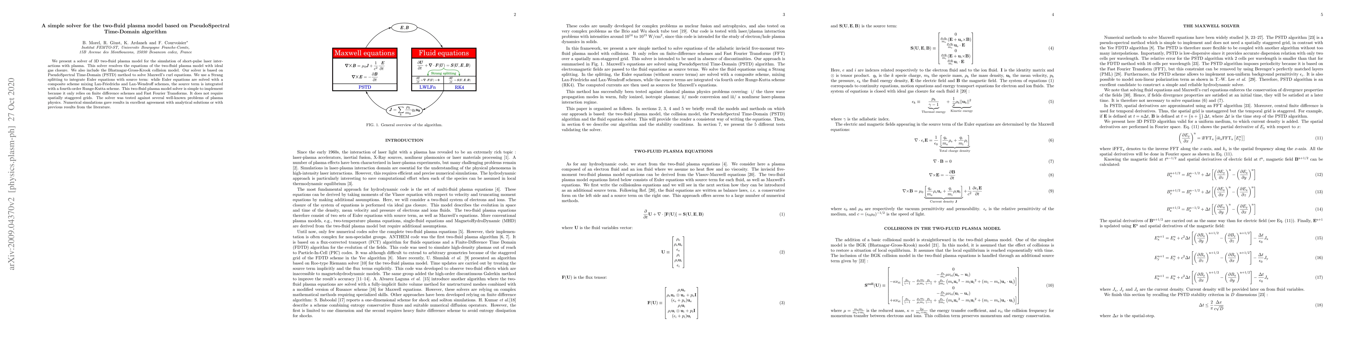 This paper introduces a straightforward solver for the 3D two-fluid plasma model, utilizing the PseudoSpectral Time-Domain (PSTD) method to simulate laser-plasma interactions. The solver effectively integrates Euler equations and Maxwell's curl equations, achieving accurate results validated against established plasma physics problems.