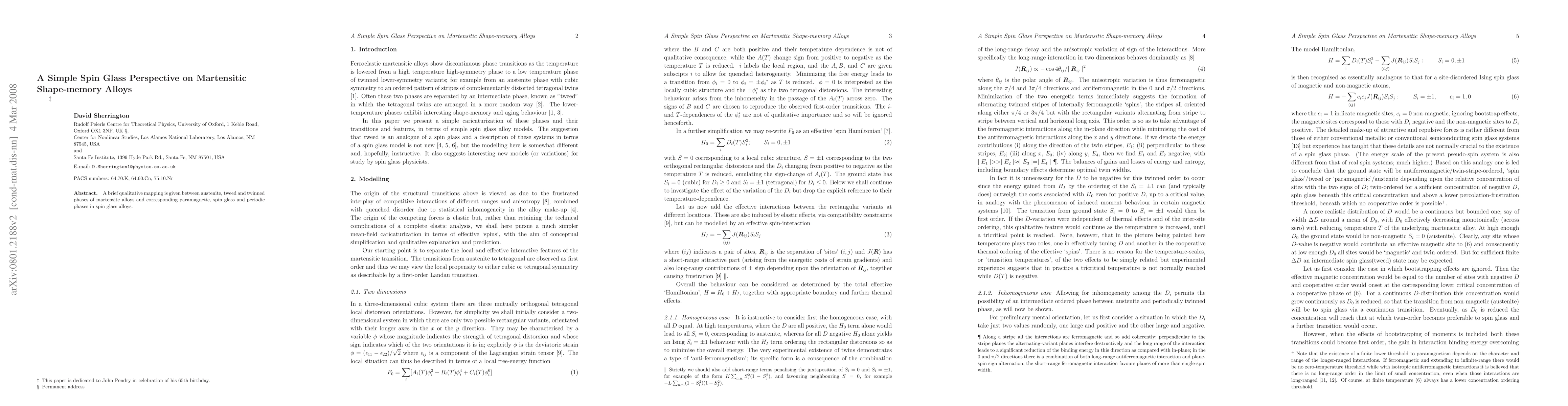 A brief qualitative mapping is given between austenite, tweed and twinned phases of martensite alloys and corresponding paramagnetic, spin glass and periodic phases in spin glass alloys.