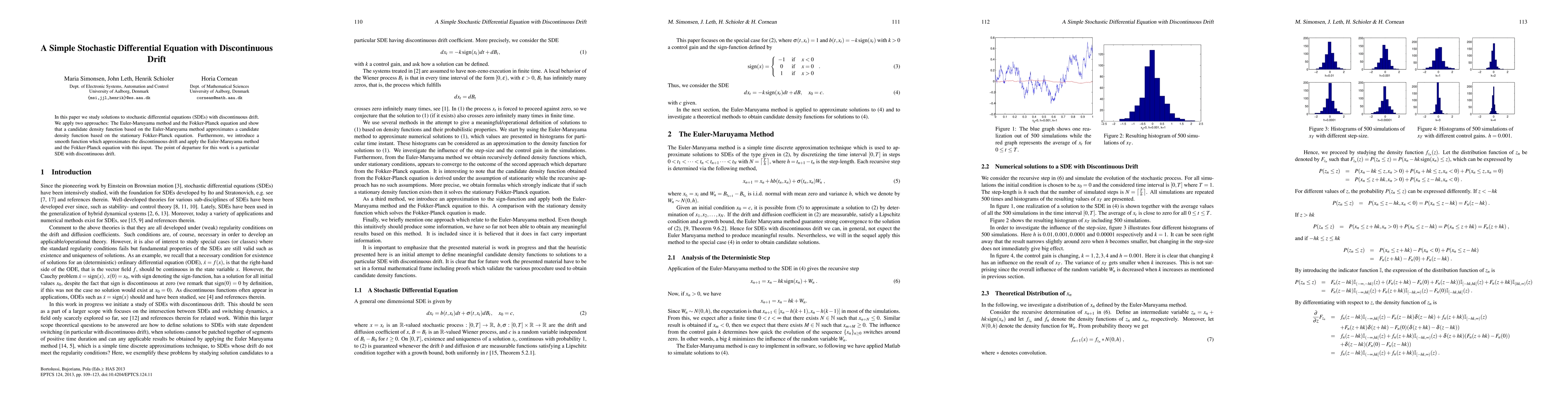 This paper investigates stochastic differential equations (SDEs) with discontinuous drift, employing the Euler-Maruyama method and the Fokker-Planck equation to approximate density functions, and introduces a smooth function to approximate the discontinuous drift.