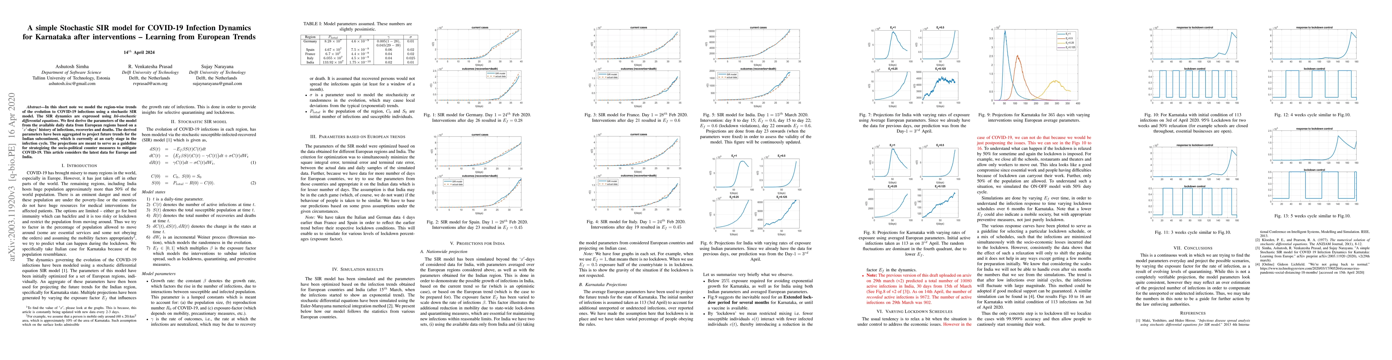 This paper models COVID-19 infection dynamics in Karnataka using a stochastic SIR model derived from European infection data. The projections aim to guide socio-political countermeasures in India's early infection stage.