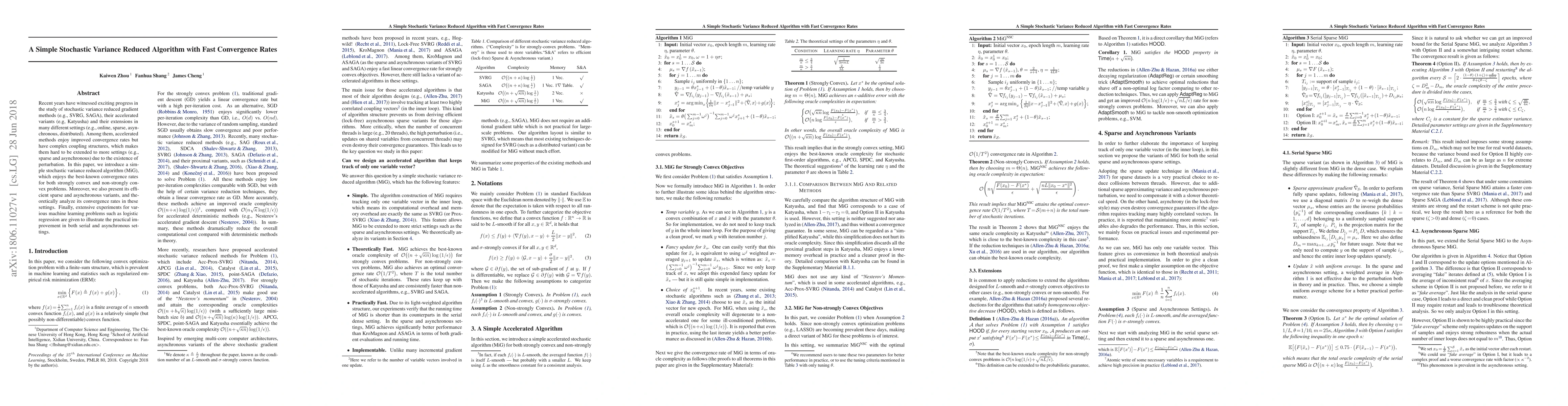 Researchers introduced MiG, a simple stochastic variance reduced algorithm with fast convergence rates for strongly convex and non-strongly convex problems, as well as efficient sparse and asynchronous variants.