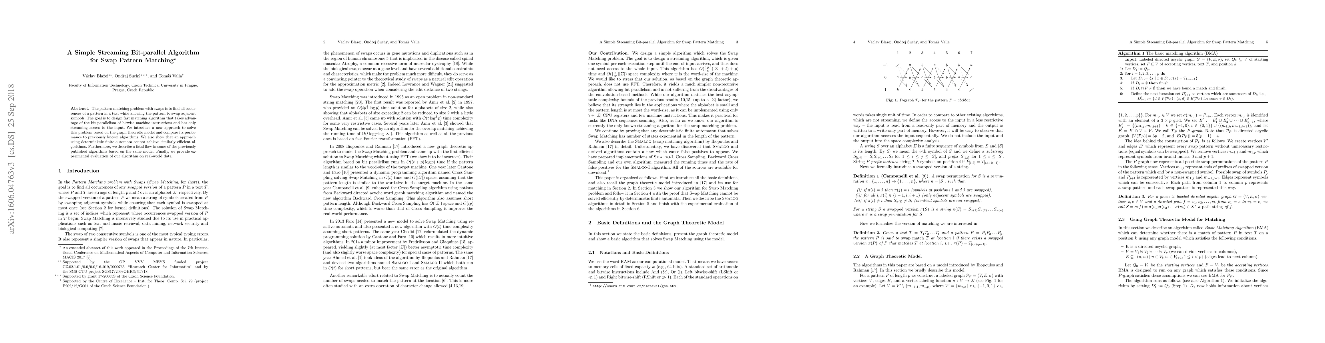 The pattern matching problem with swaps is to find all occurrences of a pattern in a text while allowing the pattern to swap adjacent symbols. The goal is to design fast matching algorithm that takes advantage of the bit parallelism of bitwise machine instructions and has only streaming access to the input. We introduce a new approach to solve this problem based on the graph theoretic model and compare its performance to previously known algorithms. We also show that an approach using deterministic finite automata cannot achieve similarly efficient algorithms. Furthermore, we describe a fatal flaw in some of the previously published algorithms based on the same model. Finally, we provide experimental evaluation of our algorithm on real-world data.