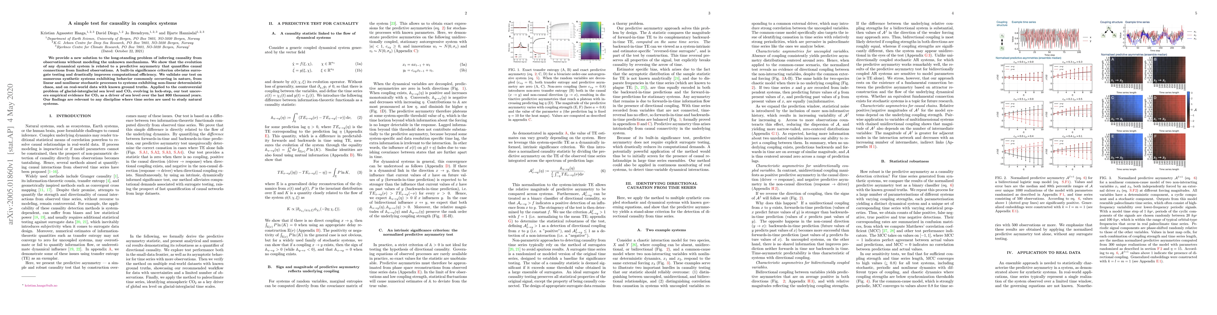 We provide a new solution to the long-standing problem of inferring causality from observations without modeling the unknown mechanisms. We show that the evolution of any dynamical system is related to a predictive asymmetry that quantifies causal connections from limited observations. A built-in significance criterion obviates surrogate testing and drastically improves computational efficiency. We validate our test on numerous synthetic systems exhibiting behavior commonly occurring in nature, from linear and nonlinear stochastic processes to systems exhibiting nonlinear deterministic chaos, and on real-world data with known ground truths. Applied to the controversial problem of glacial-interglacial sea level and CO$_{2}$ evolving in lock-step, our test uncovers empirical evidence for CO$_{2}$ as a driver of sea level over the last 800 thousand years. Our findings are relevant to any discipline where time series are used to study natural systems.