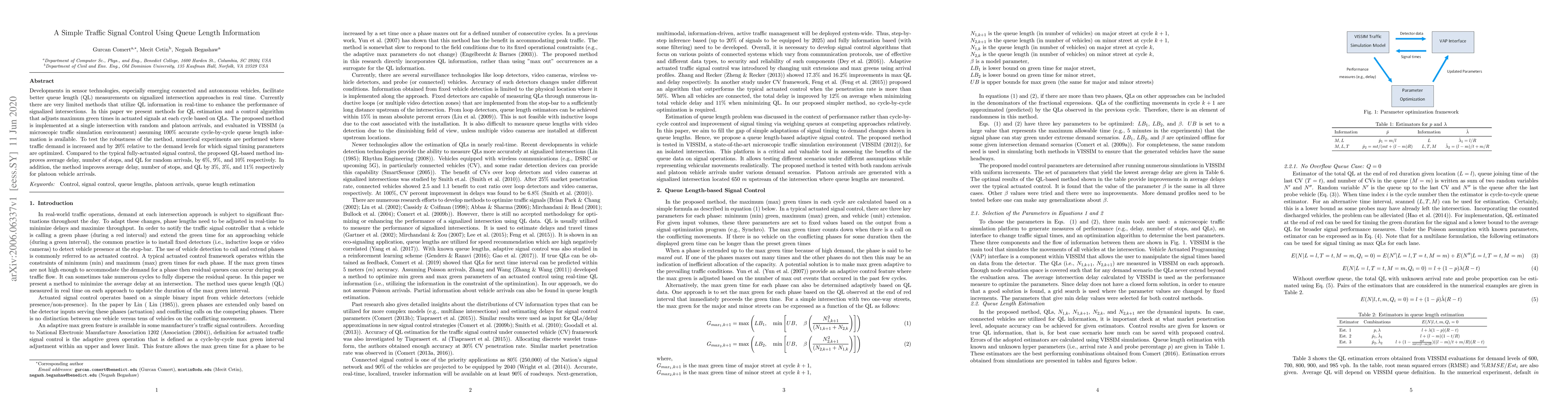 This paper introduces a real-time traffic signal control method using queue length (QL) data from sensors, improving signal timing for both random and platoon vehicle arrivals. Evaluated in VISSIM, the proposed QL-based control reduces average delay by 6%, stops by 9%, and queue length by 10% for random arrivals, and by 3%, 3%, and 11% for platoon arrivals, compared to traditional actuated control.