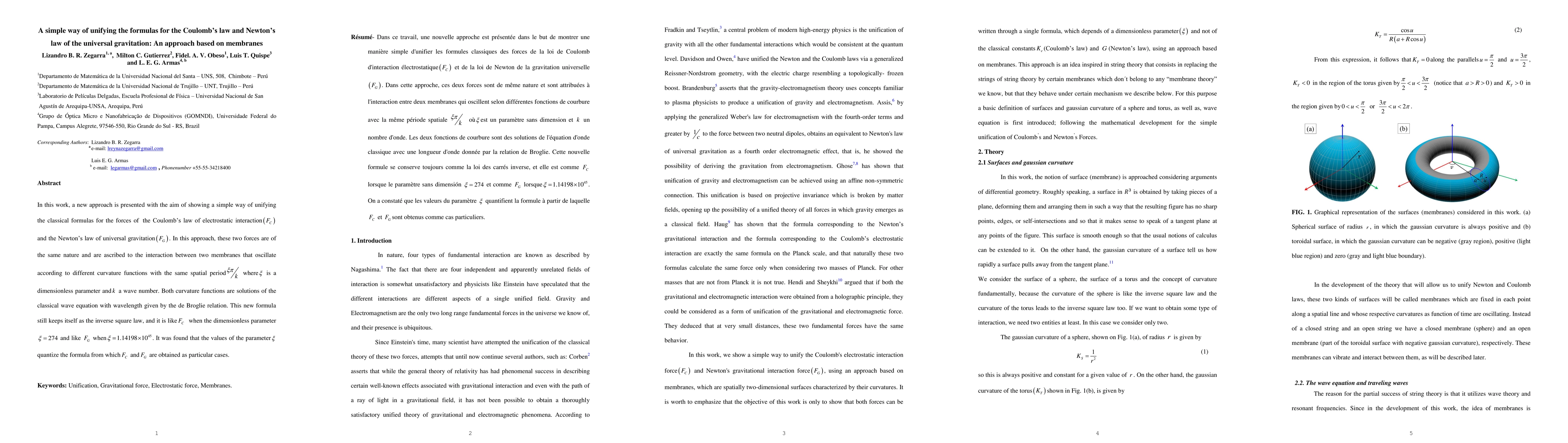 A new approach unifies Coulomb's law and Newton's law of universal gravitation by describing them as interactions between oscillating membranes with different curvature functions, leading to quantized formulae that yield the inverse square laws at specific parameter values.