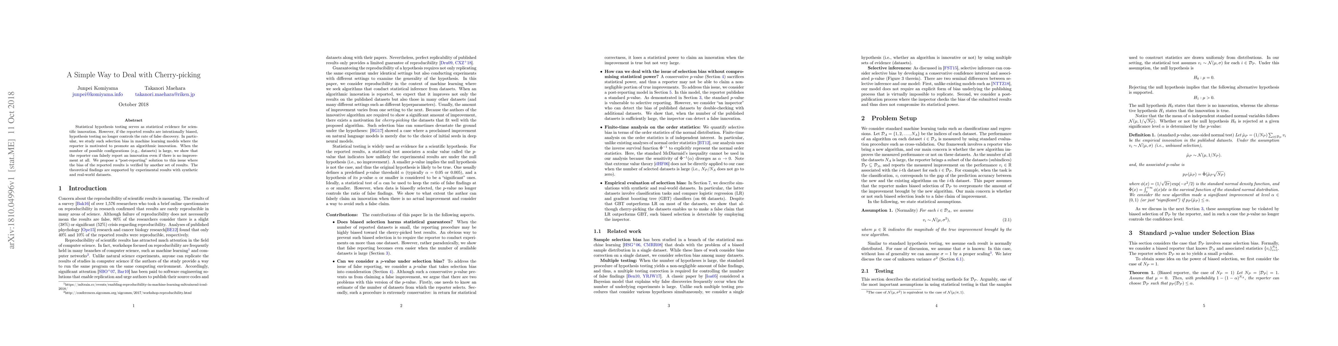 Statistical hypothesis testing serves as statistical evidence for scientific innovation. However, if the reported results are intentionally biased, hypothesis testing no longer controls the rate of false discovery. In particular, we study such selection bias in machine learning models where the reporter is motivated to promote an algorithmic innovation. When the number of possible configurations (e.g., datasets) is large, we show that the reporter can falsely report an innovation even if there is no improvement at all. We propose a `post-reporting' solution to this issue where the bias of the reported results is verified by another set of results. The theoretical findings are supported by experimental results with synthetic and real-world datasets.
