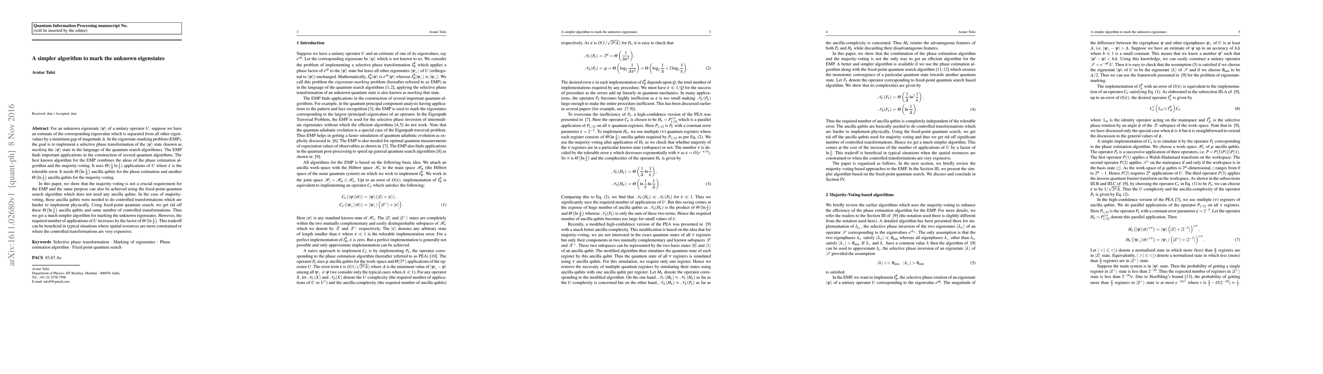 Researchers developed a simpler algorithm for marking unknown eigenstates in quantum systems, eliminating the need for ancilla qubits in some cases, but increasing the required number of applications of the unitary operator.
