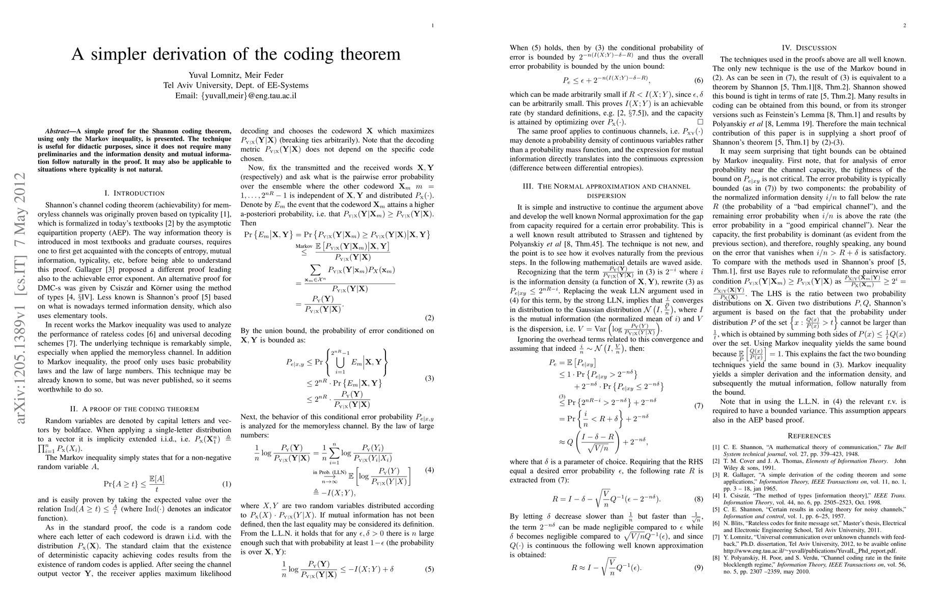 This paper presents a straightforward proof of the Shannon coding theorem utilizing only the Markov inequality, making it pedagogically effective due to its minimal prerequisites and the natural emergence of information density and mutual information. The technique's applicability extends beyond typical scenarios where typicality is not intuitive.