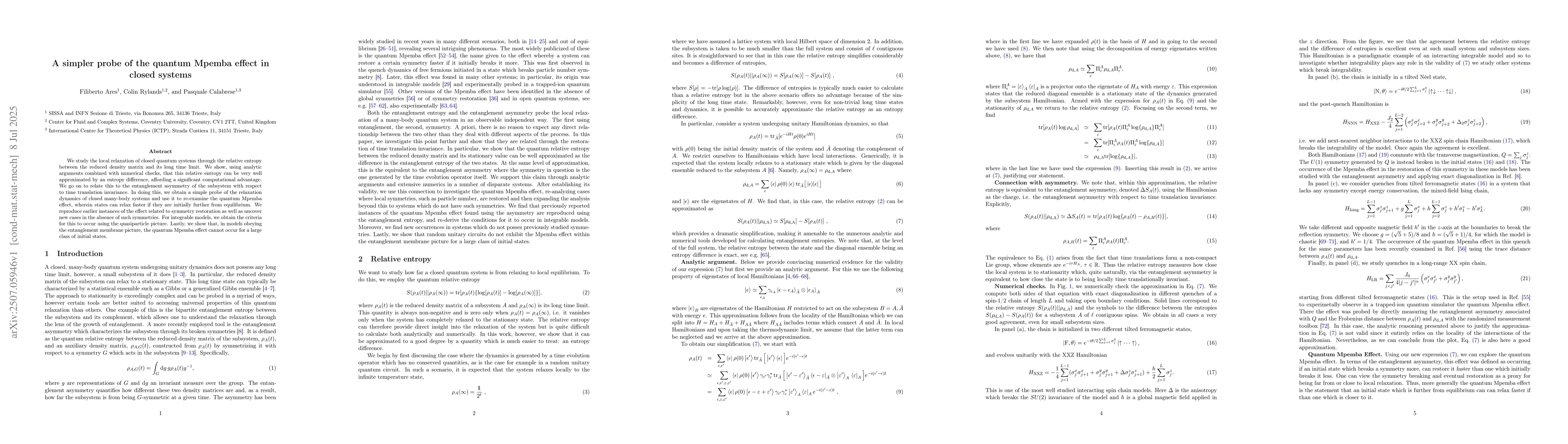 We study the local relaxation of closed quantum systems through the relative entropy between the reduced density matrix and its long time limit. We show, using analytic arguments combined with numerical checks, that this relative entropy can be very well approximated by an entropy difference, affording a significant computational advantage. We go on to relate this to the entanglement asymmetry of the subsystem with respect to time translation invariance. In doing this, we obtain a simple probe of the relaxation dynamics of closed many-body systems and use it to re-examine the quantum Mpemba effect, wherein states can relax faster if they are initially further from equilibrium. We reproduce earlier instances of the effect related to symmetry restoration as well as uncover new cases in the absence of such symmetries. For integrable models, we obtain the criteria for this to occur using the quasiparticle picture. Lastly, we show that, in models obeying the entanglement membrane picture, the quantum Mpemba effect cannot occur for a large class of initial states.