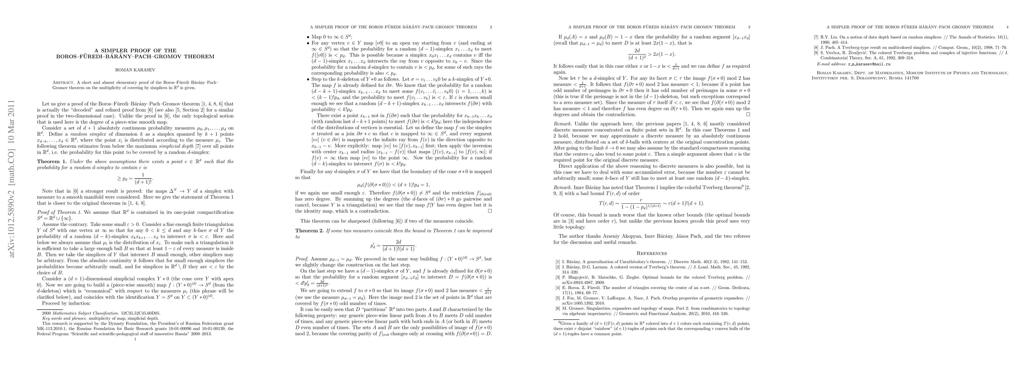 A short and almost elementary proof of the Boros-F\"uredi-B\'ar\'any-Pach-Gromov theorem on the multiplicity of covering by simplices in $\mathbb R^d$ is given.