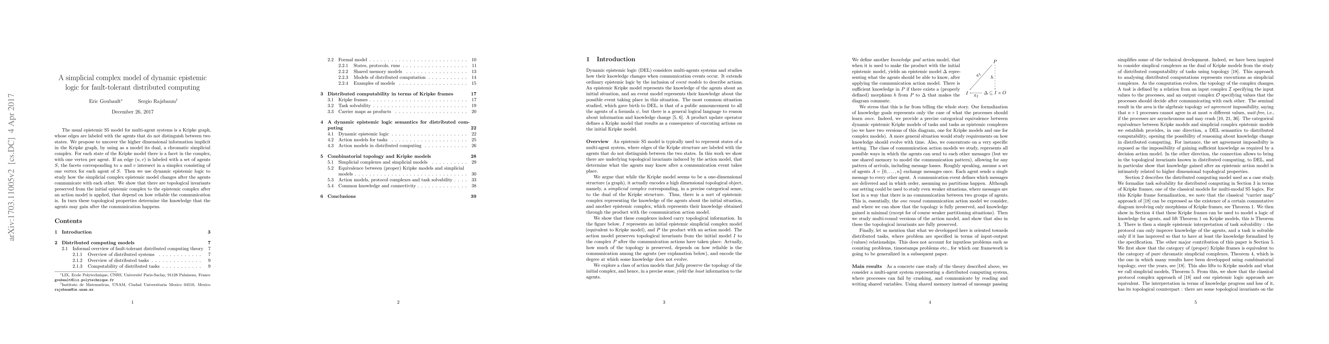 Researchers propose a new method for modeling dynamic epistemic logic in distributed computing using a simplicial complex, which preserves topological properties related to communication reliability. The model provides insights into how agents' knowledge changes after interacting with each other.