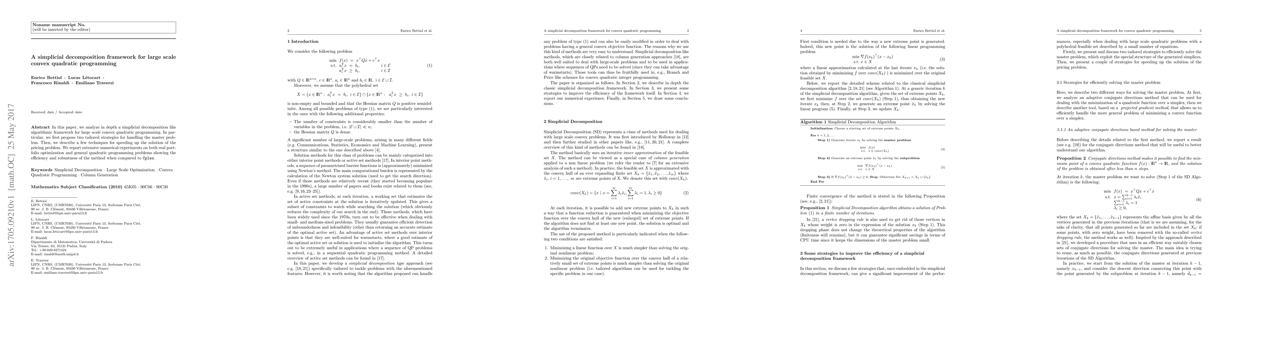 This paper proposes a simplicial decomposition framework for large scale convex quadratic programming, introducing tailored strategies for the master problem and techniques to accelerate the pricing problem, and demonstrates its efficiency through extensive numerical experiments against Cplex.