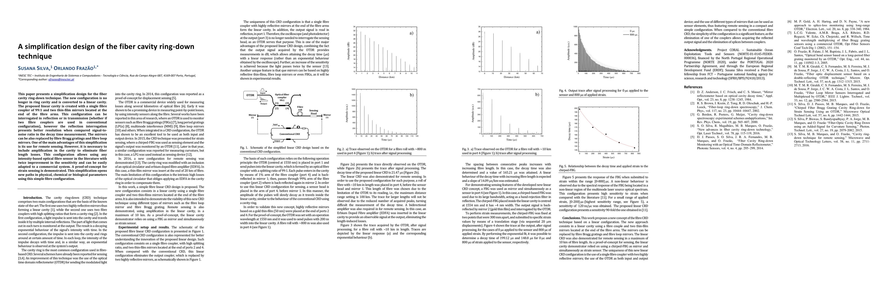 This paper presents a simplification design for the fiber cavity ring-down technique. The new configuration is no longer in ring cavity and is converted to a linear cavity. The proposed linear cavity is created with a single fibre coupler of 99:1 and two thin-film mirrors located at the end of the fibre arms. This configuration can be interrogated in reflection or in transmission (whether if two fibre couplers are used in conventional configuration), however the reflection interrogation presents better resolution when compared signal-to-noise ratio in the decay time measurement. The mirrors can be also replaced by fibre Bragg gratings and fibre loop mirrors. One of the main advantages of this simplification is its use for remote sensing. However, it is necessary to include amplification in the cavity to eliminate fiber length losses. This configuration allows using any intensity-based optical fibre sensor in the literature with twice improvement in the sensitivity and can be easily adapted to a commercial system. A proof-of-concept for strain sensing is demonstrated. This simplification opens new paths in physical, chemical or biological parameters using this simple fibre configuration.
