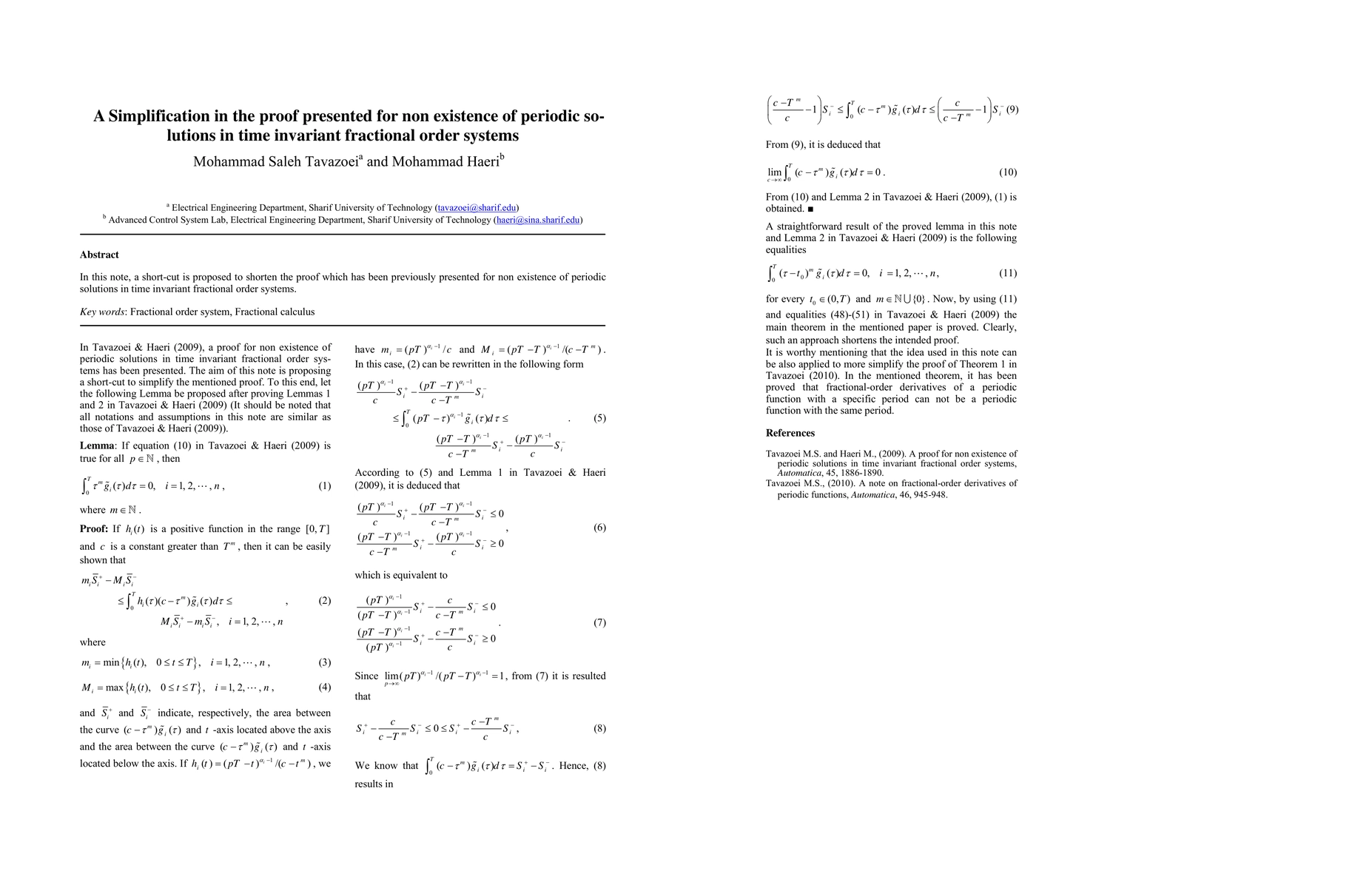 In this note, a short-cut is proposed to shorten the proof which has been previously presented for non existence of periodic solutions in time invariant fractional order systems.