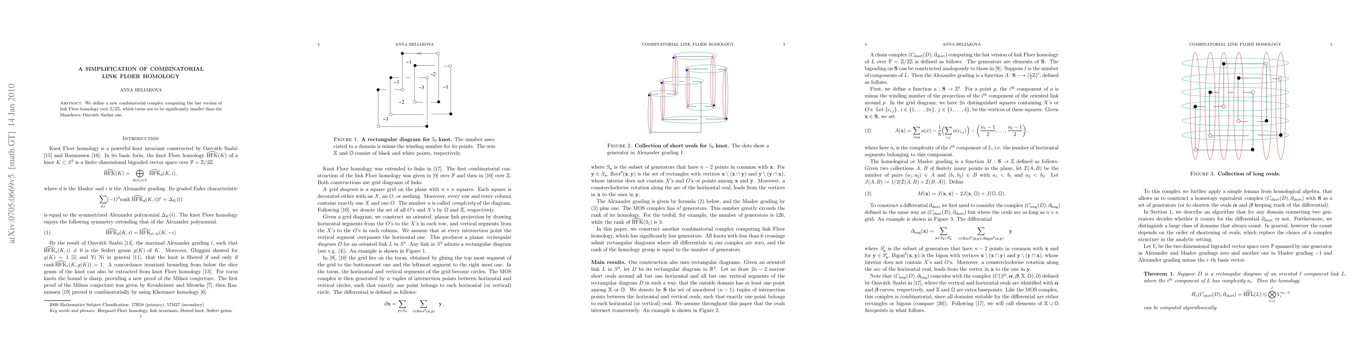 The paper introduces a simplified combinatorial complex for computing the hat version of link Floer homology over Z/2Z, which is notably smaller than the previously used Manolescu-Ozsvath-Sarkar complex. This new approach provides a more efficient method for the computation.