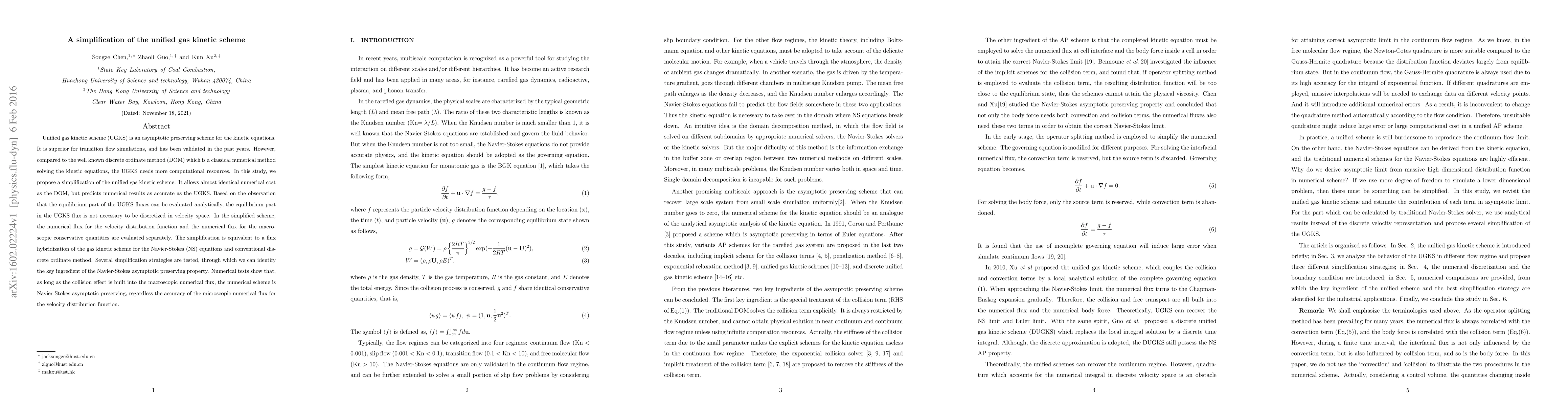 Unified gas kinetic scheme (UGKS) is an asymptotic preserving scheme for the kinetic equations. It is superior for transition flow simulations, and has been validated in the past years. However, compared to the well known discrete ordinate method (DOM) which is a classical numerical method solving the kinetic equations, the UGKS needs more computational resources. In this study, we propose a simplification of the unified gas kinetic scheme. It allows almost identical numerical cost as the DOM, but predicts numerical results as accurate as the UGKS. Based on the observation that the equilibrium part of the UGKS fluxes can be evaluated analytically, the equilibrium part in the UGKS flux is not necessary to be discretized in velocity space. In the simplified scheme, the numerical flux for the velocity distribution function and the numerical flux for the macroscopic conservative quantities are evaluated separately. The simplification is equivalent to a flux hybridization of the gas kinetic scheme for the Navier-Stokes (NS) equations and conventional discrete ordinate method. Several simplification strategies are tested, through which we can identify the key ingredient of the Navier-Stokes asymptotic preserving property. Numerical tests show that, as long as the collision effect is built into the macroscopic numerical flux, the numerical scheme is Navier-Stokes asymptotic preserving, regardless the accuracy of the microscopic numerical flux for the velocity distribution function.