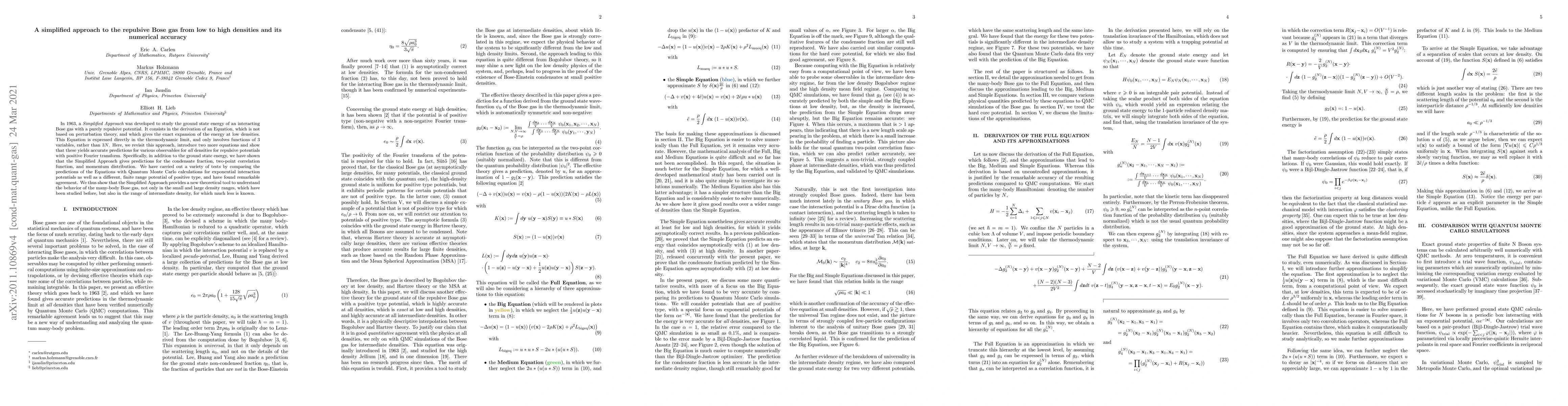In 1963, a Simple Approach was developed to study the ground state energy of an interacting Bose gas. It consists in the derivation of an Equation, which is not based on perturbation theory, and which gives the exact expansion of the energy at low densities. This Equation is expressed directly in the thermodynamic limit, and only involves functions of $3$ variables, rather than $3N$. Here, we revisit this approach, and show that the Equation yields accurate predictions for various observables for all densities. Specifically, in addition to the ground state energy, we have shown that the Simple Approach gives predictions for the condensate fraction, two-point correlation function, and momentum distribution. We have carried out a variety of tests by comparing the predictions of the Equation with Quantum Monte Carlo calculations, and have found remarkable agreement. We thus show that the Simple Approach provides a new theoretical tool to understand the behavior of the many-body Bose gas, not only in the small and large density ranges, which have been studied before, but also in the range of intermediate density, for which little is known.