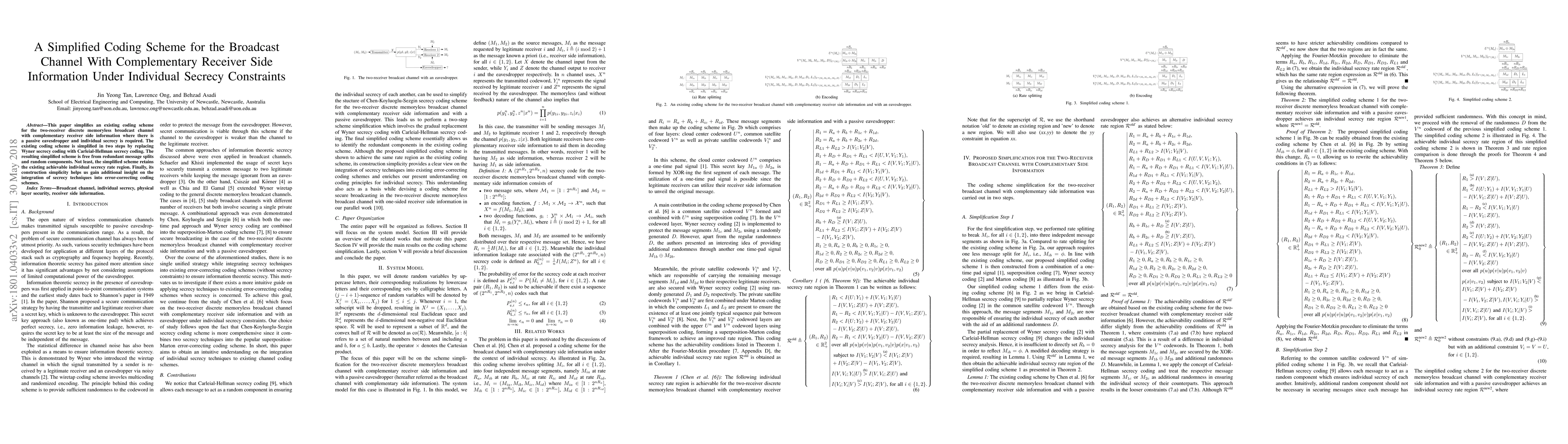 This paper simplifies an existing coding scheme for the two-receiver discrete memoryless broadcast channel with complementary receiver side information where there is a passive eavesdropper and individual secrecy is required. The existing coding scheme is simplified in two steps by replacing Wyner secrecy coding with Carleial-Hellman secrecy coding. The resulting simplified scheme is free from redundant message splits and random components. Not least, the simplified scheme retains the existing achievable individual secrecy rate region. Finally, its construction simplicity helps us gain additional insight on the integration of secrecy techniques into error-correcting coding schemes.