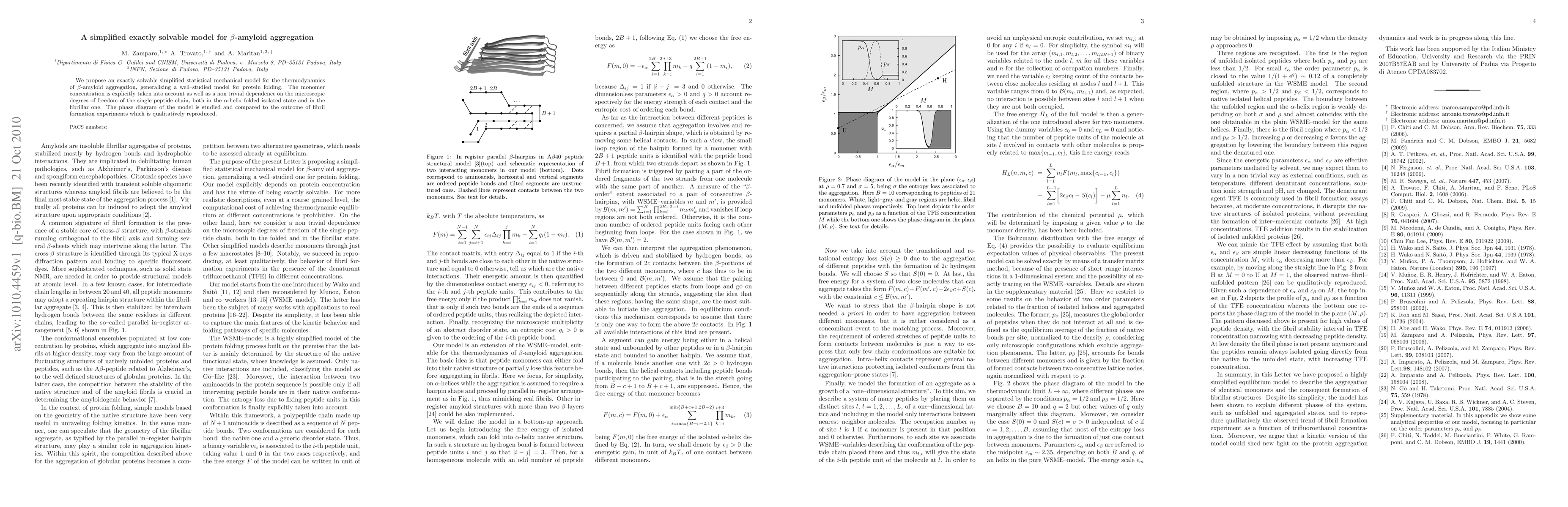 This paper introduces a simplified statistical mechanical model for beta-amyloid aggregation, accounting for monomer concentration and the peptide chain's degrees of freedom. The model's phase diagram aligns qualitatively with experimental observations of fibril formation.