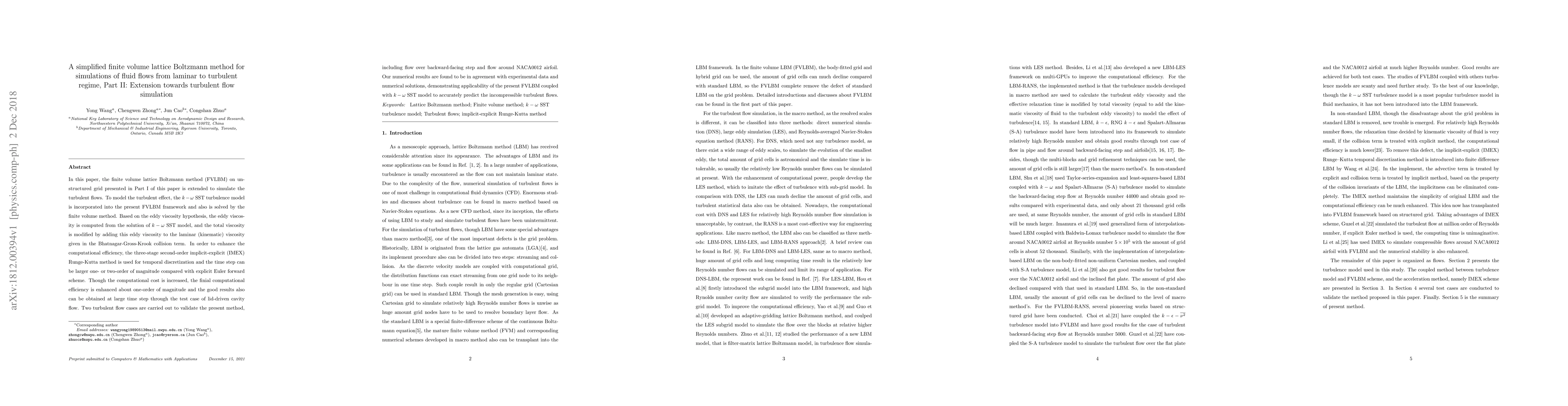 In this paper, the finite volume lattice Boltzmann method (FVLBM) on unstructured grid presented in Part I of this paper is extended to simulate the turbulent flows. To model the turbulent effect, the $k-\omega$ SST turbulence model is incorporated into the present FVLBM framework and also is solved by the finite volume method. Based on the eddy viscosity hypothesis, the eddy viscosity is computed from the solution of k-\omega SST model, and the total viscosity is modified by adding this eddy viscosity to the laminar (kinematic) viscosity given in the Bhatnagar-Gross-Krook collision term. In order to enhance the computational efficiency, the three-stage second-order implicit-explicit (IMEX) Runge-Kutta method is used for temporal discretization and the time step can be larger one- or two-order of magnitude compared with explicit Euler forward scheme. Though the computational cost is increased, the finial computational efficiency is enhanced about one-order of magnitude and the good results also can be obtained at large time step through the test case of lid-driven cavity flow. Two turbulent flow cases are carried out to validate the present method, including flow over backward-facing step and flow around NACA0012 airfoil. Our numerical results are found to be in agreement with experimental data and numerical solutions, demonstrating applicability of the present FVLBM coupled with k-\omega SST model to accurately predict the incompressible turbulent flows.