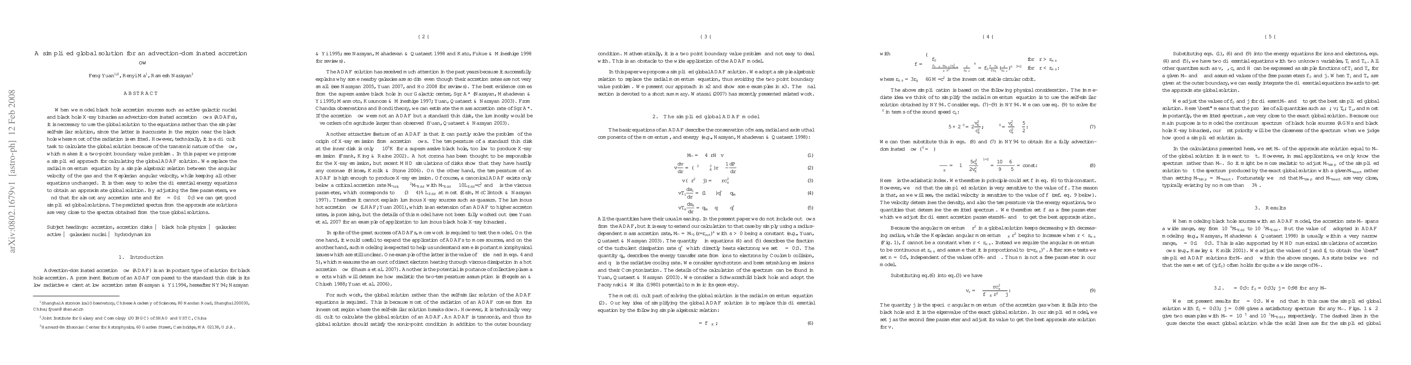 This paper proposes a simplified method for calculating global solutions for advection-dominated accretion flows (ADAFs) around black holes, replacing the radial momentum equation with a simple algebraic relation to ease the computational difficulty. The approach yields approximate global solutions that closely match the true spectra.