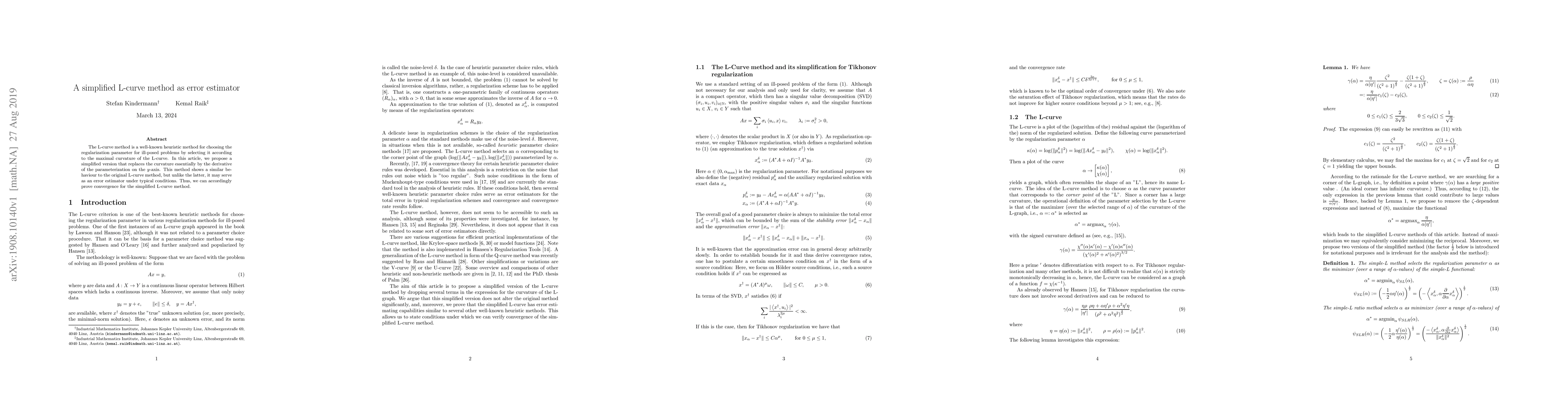 The L-curve method is a well-known heuristic method for choosing the regularization parameter for ill-posed problems by selecting it according to the maximal curvature of the L-curve. In this article, we propose a simplified version that replaces the curvature essentially by the derivative of the parameterization on the $y$-axis. This method shows a similar behaviour to the original L-curve method, but unlike the latter, it may serve as an error estimator under typical conditions. Thus, we can accordingly prove convergence for the simplified L-curve method.