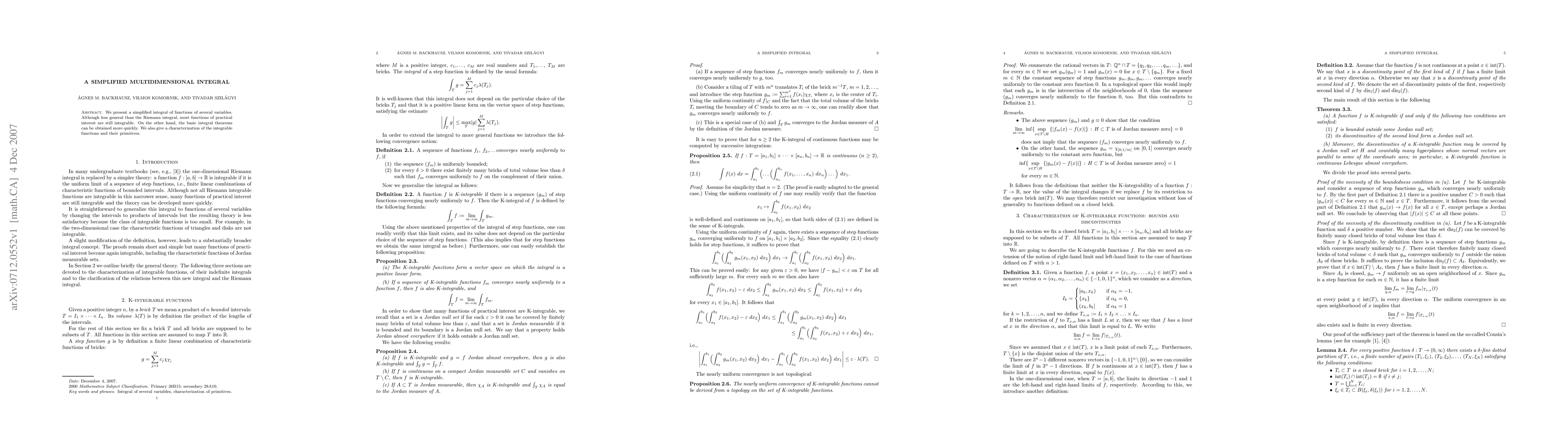 We present a simplified integral of functions of several variables. Although less general than the Riemann integral, most functions of practical interest are still integrable. On the other hand, the basic integral theorems can be obtained more quickly. We also give a characterization of the integrable functions and their primitives.