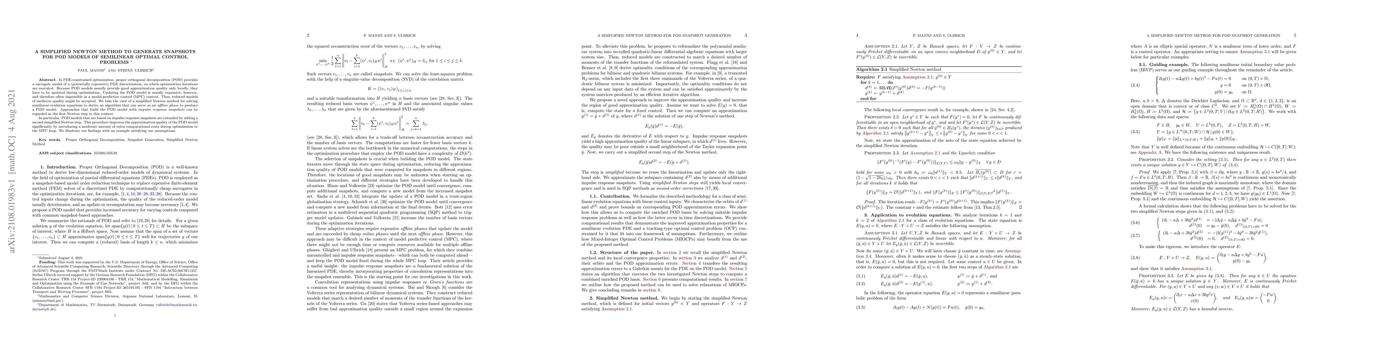 This paper presents a simplified Newton method to generate impulse response snapshots for proper orthogonal decomposition (POD) models in PDE-constrained optimization, enhancing the approximation quality of reduced models with minimal additional computational cost during optimization. The approach involves a second simplified Newton step to improve POD model accuracy, demonstrated through an example.