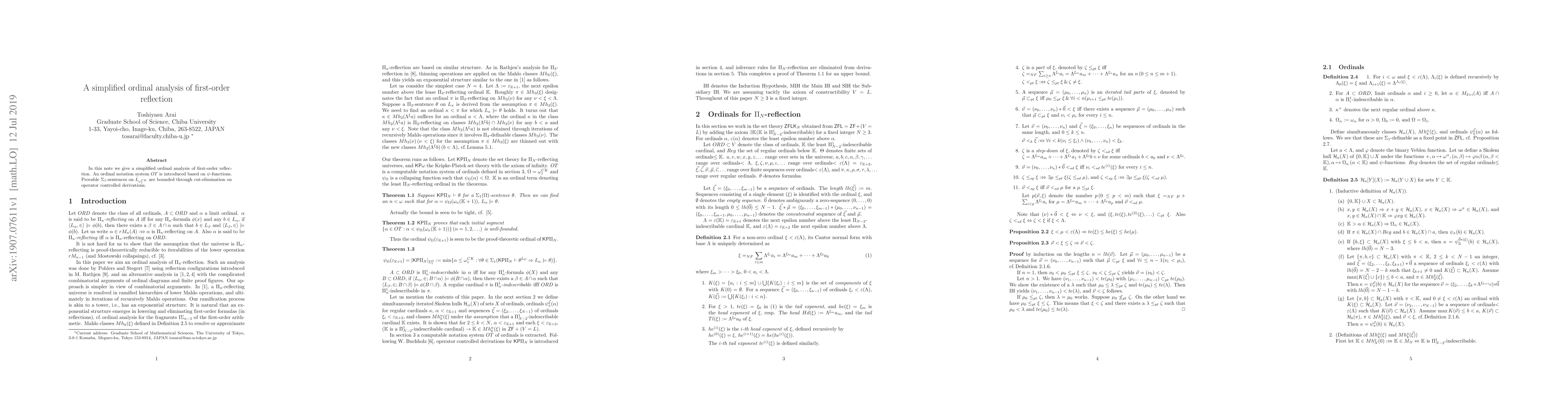In this note we give a simplified ordinal analysis of first-order reflection. An ordinal notation system $OT$ is introduced based on $\psi$-functions. Provable $\Sigma_{1}$-sentences on $L_{\omega_{1}^{CK}}$ are bounded through cut-elimination on operator controlled derivations.