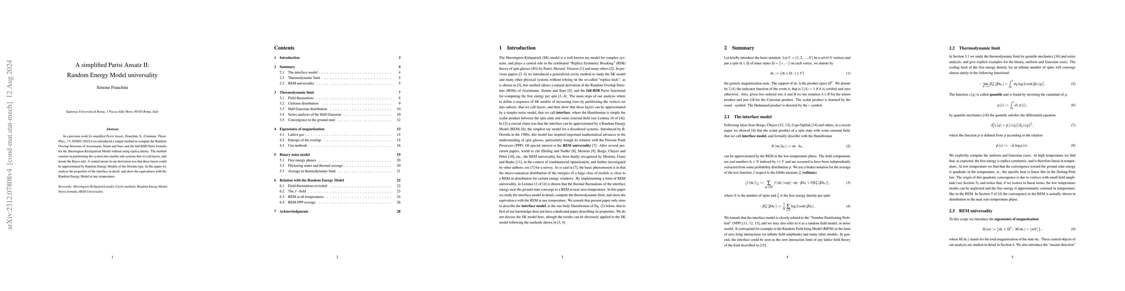 In a previous work [A simplified Parisi Ansatz, Franchini, S., Commun. Theor. Phys., 73, 055601 (2021)] we introduced a simple method to compute the Random Overlap Structure of Aizenmann, Simm and Stars and the full-RSB Parisi formula for the Sherrington-Kirckpatrick Model without using replica theory. The method consists in partitioning the system into smaller sub-systems that we call layers, and iterate the Bayes rule. A central ansatz in our derivation was that these layers could be approximated by Random Energy Models of the Derrida type. In this paper we analyze the properties of the interface in detail, and show the equivalence with the Random Energy Model at any temperature.
