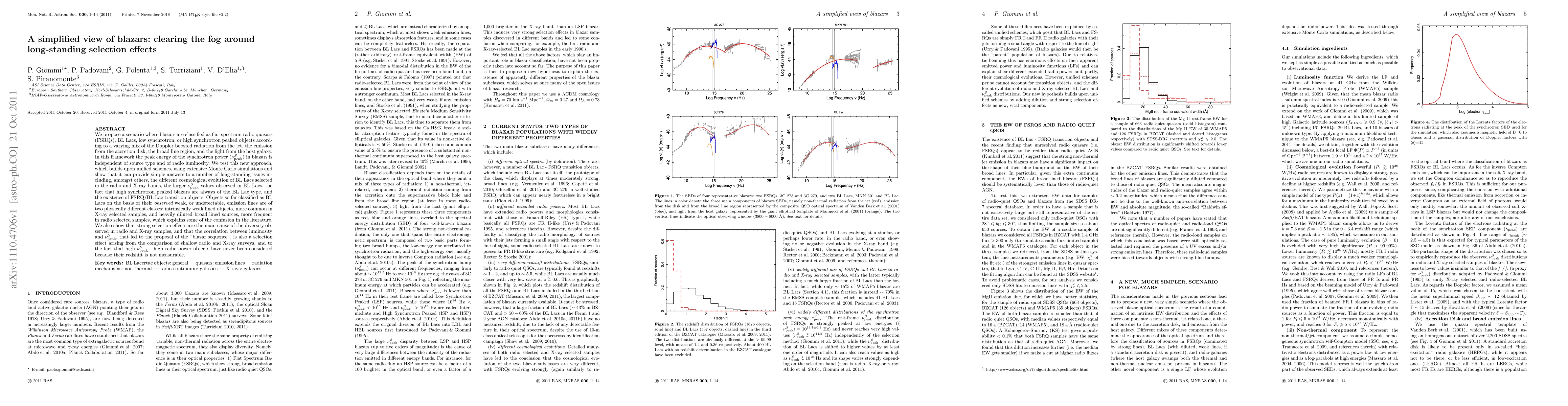 We propose a scenario where blazars are classified as flat-spectrum radio quasars (FSRQs), BL Lacs, low synchrotron, or high synchrotron peaked objects according to a varying mix of the Doppler boosted radiation from the jet, the emission from the accretion disk, the broad line region, and the light from the host galaxy. In this framework the peak energy of the synchrotron power (nu_peak) in blazars is independent of source type and of radio luminosity. We test this new approach, which builds upon unified schemes, using extensive Monte Carlo simulations and show that it can provide simple answers to a number of long-standing issues including, amongst others, the different cosmological evolution of BL Lacs selected in the radio and X-ray bands, the larger nu_peak values observed in BL Lacs, the fact that high synchrotron peaked blazars are always of the BL Lac type, and the existence of FSRQ/BL Lac transition objects. Objects so far classified as BL Lacs on the basis of their observed weak, or undetectable, emission lines are of two physically different classes: intrinsically weak lined objects, more common in X-ray selected samples, and heavily diluted broad lined sources, more frequent in radio selected samples, which explains some of the confusion in the literature. We also show that strong selection effects are the main cause of the diversity observed in radio and X-ray samples, and that the correlation between luminosity and nu_peak, that led to the proposal of the "blazar sequence", is also a selection effect arising from the comparison of shallow radio and X-ray surveys, and to the fact that high nu_peak-high radio power objects have never been considered because their redshift is not measurable.