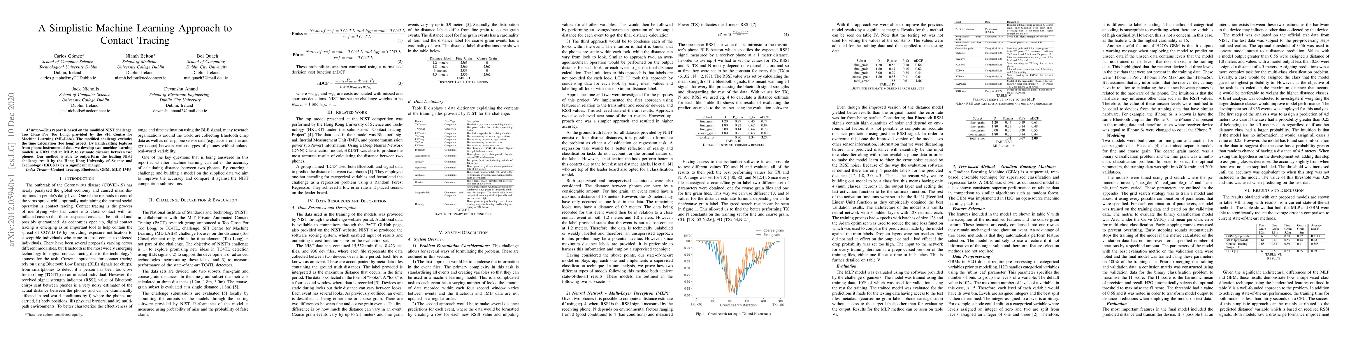 This report is based on the modified NIST challenge, Too Close For Too Long, provided by the SFI Centre for Machine Learning (ML-Labs). The modified challenge excludes the time calculation (too long) aspect. By handcrafting features from phone instrumental data we develop two machine learning models, a GBM and an MLP, to estimate distance between two phones. Our method is able to outperform the leading NIST challenge result by the Hong Kong University of Science and Technology (HKUST) by a significant margin.