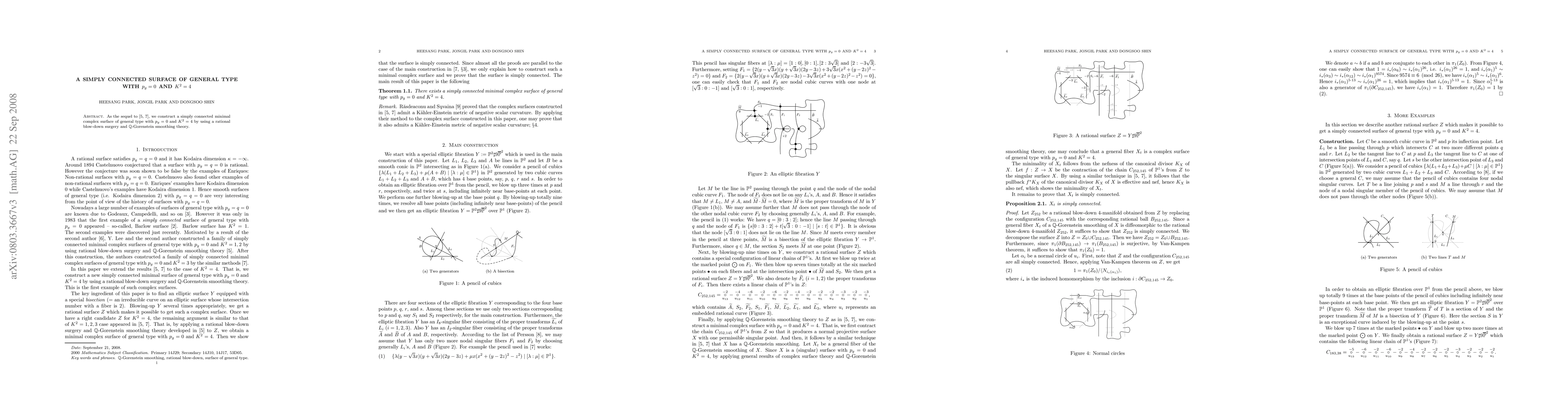 This paper constructs a simply connected minimal complex surface of general type featuring zero geometric genus (p_g=0) and a canonical divisor squared value of 4 (K^2=4), utilizing rational blow-down surgery and Q-Gorenstein smoothing techniques. The work follows up on previous studies referenced in [5, 7].