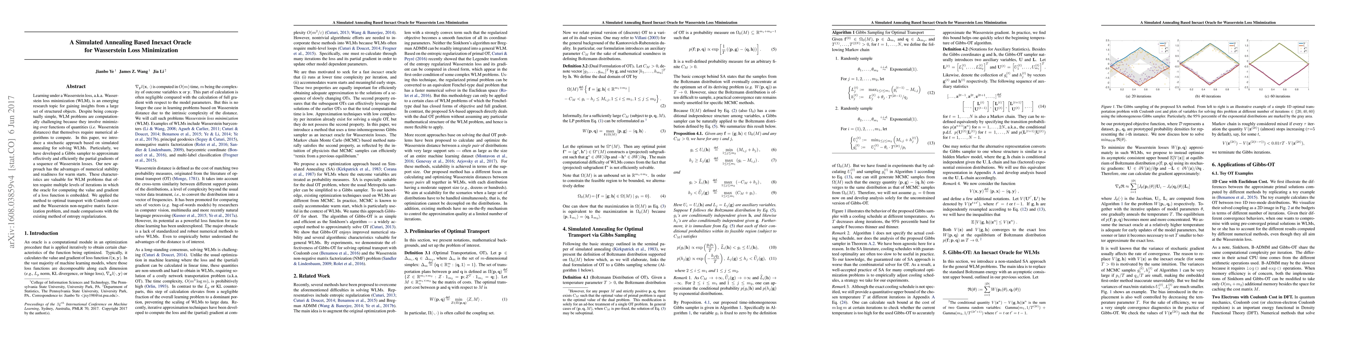 This paper proposes a simulated annealing-based inexact oracle using a Gibbs sampler to efficiently minimize Wasserstein loss in large structured object datasets. The method offers numerical stability and supports warm starts, making it suitable for iterative optimization problems like optimal transport and Wasserstein non-negative matrix factorization.