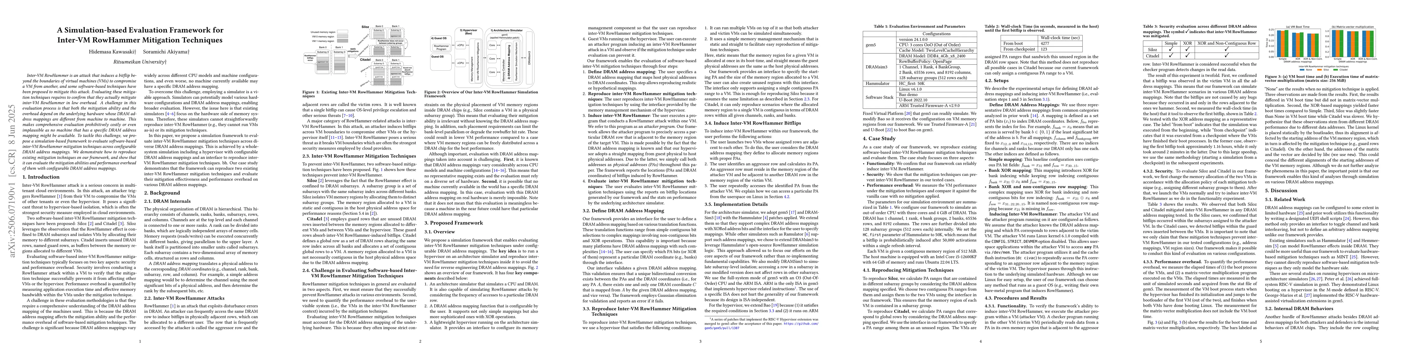 Inter-VM RowHammer is an attack that induces a bitflip beyond the boundaries of virtual machines (VMs) to compromise a VM from another, and some software-based techniques have been proposed to mitigate this attack. Evaluating these mitigation techniques requires to confirm that they actually mitigate inter-VM RowHammer in low overhead. A challenge in this evaluation process is that both the mitigation ability and the overhead depend on the underlying hardware whose DRAM address mappings are different from machine to machine. This makes comprehensive evaluation prohibitively costly or even implausible as no machine that has a specific DRAM address mapping might be available. To tackle this challenge, we propose a simulation-based framework to evaluate software-based inter-VM RowHammer mitigation techniques across configurable DRAM address mappings. We demonstrate how to reproduce existing mitigation techniques on our framework, and show that it can evaluate the mitigation abilities and performance overhead of them with configurable DRAM address mappings.